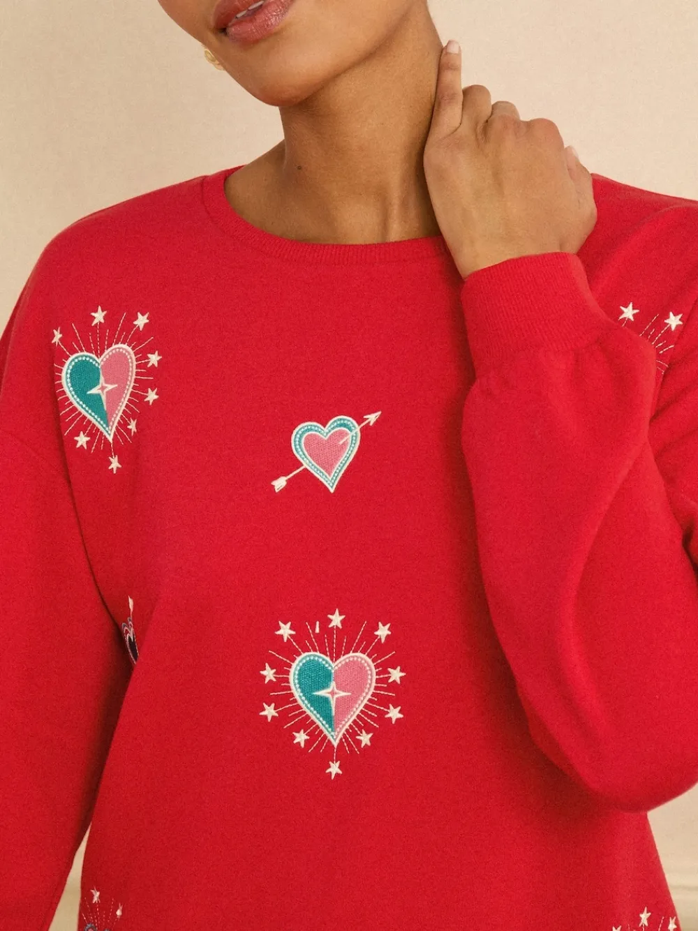 Love & Roses Red Heart Embroidery Crew Neck Jersey Sweatshirt Best