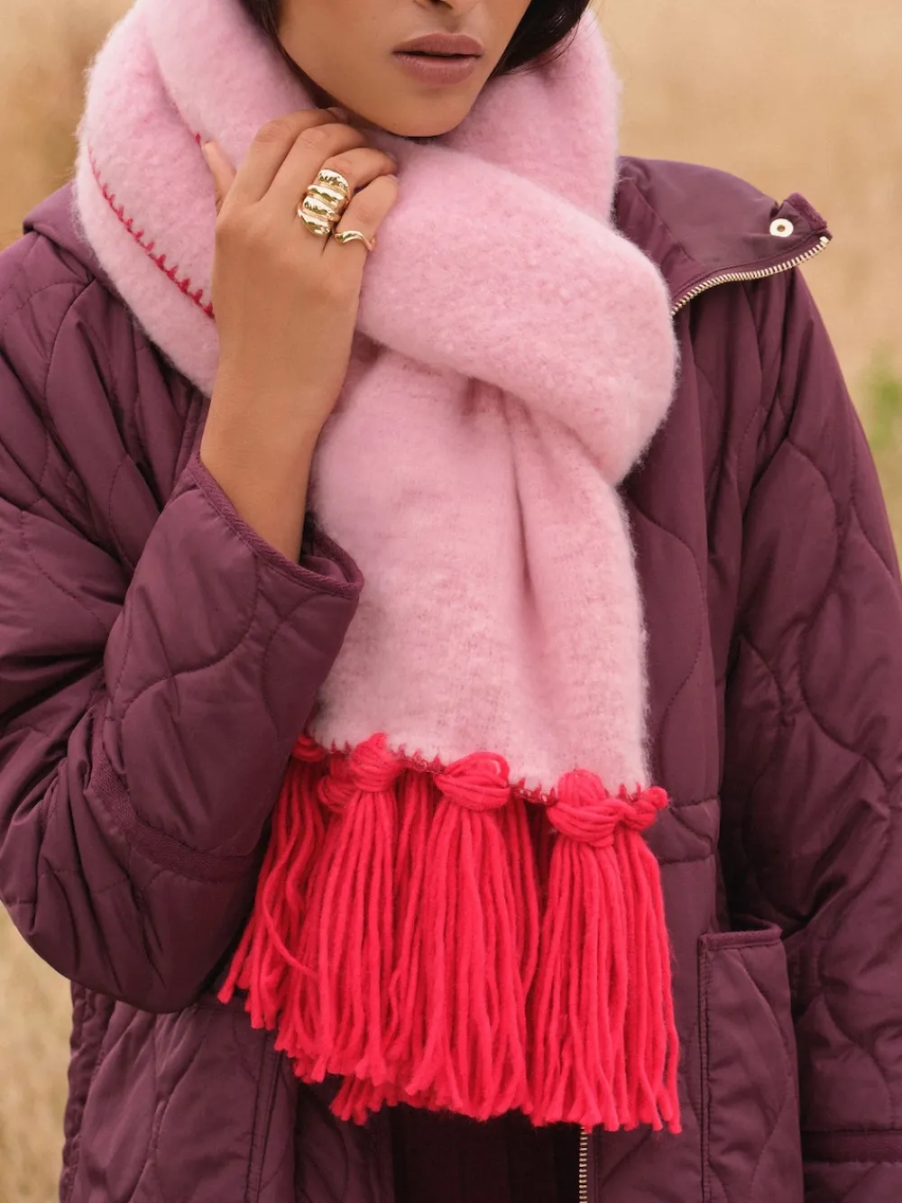 Love & Roses Tassel Cosy Contrast Brushed Scarf Pink/Red Discount