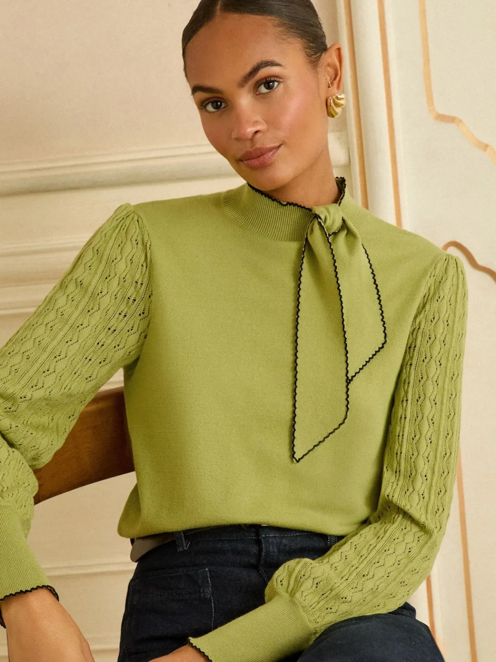 Love & Roses Tie Neck Knitted Jumper Lime Green Discount
