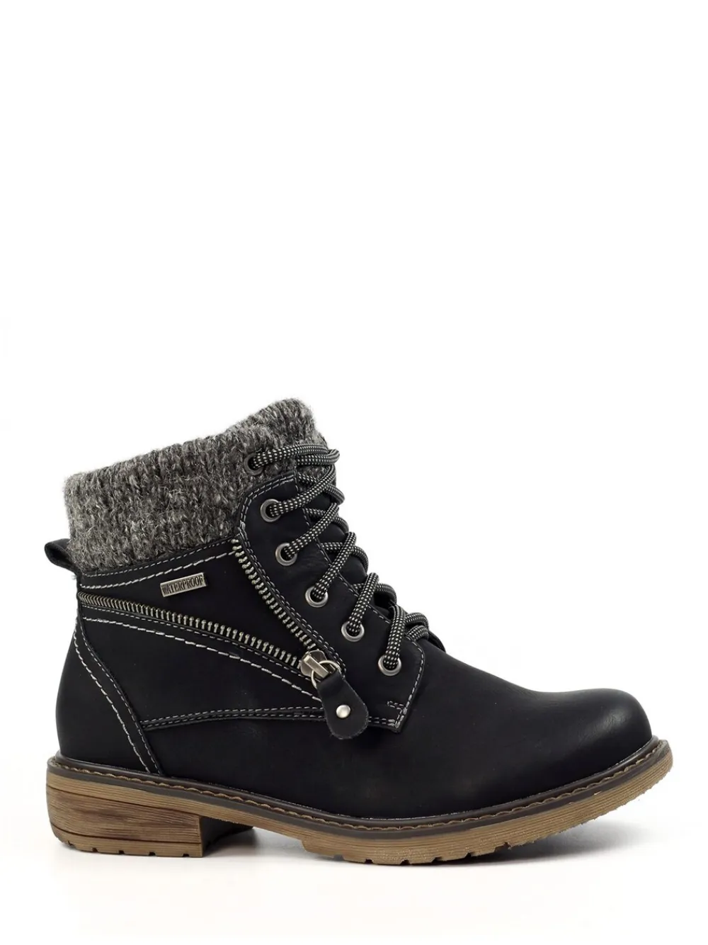 Stay warm and dry with the Benson III Waterproof Boots. The faux leather upper is both stylish and durable, while the soft faux fur lining provides superior comfort and warmth. The synthetic sole offers excellent support and traction, and the six-eyelet lace-up closure and zip ensure a secure and comfortable fit. The waterproof design, padded insole, and knitted top panel with contrasting stitch design make these boots a versatile and stylish choice for any weather. Upper – 100% Leather, Lining. and Sock – 100% Leather. Sole – 100% Rubber.