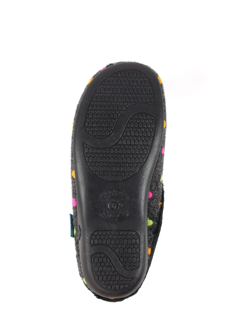 Introducing the Peanut mule slippers in black, where comfort meets style effortlessly. Crafted with a felt upper and lined with super soft fleece for luxurious warmth. Slip into relaxation with the easy mule design. Enjoy the padded insole with soft upper trims for added comfort. Decorated with a playful polka dot pattern, these slippers elevate your downtime in style. 100% Other fibres.