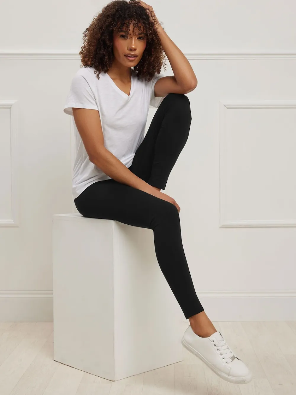 Fit & Fashion Notes: Discover the premium feel of these cotton-rich leggings. Made from a soft stretch jersey fabric, they feature a high waist and an elasticated waistband for utmost comfort. Simply style them with a basic top and trainers for a comfy and casual look you can wear all day. Machine washable. 93% Cotton, 7% Elastane.