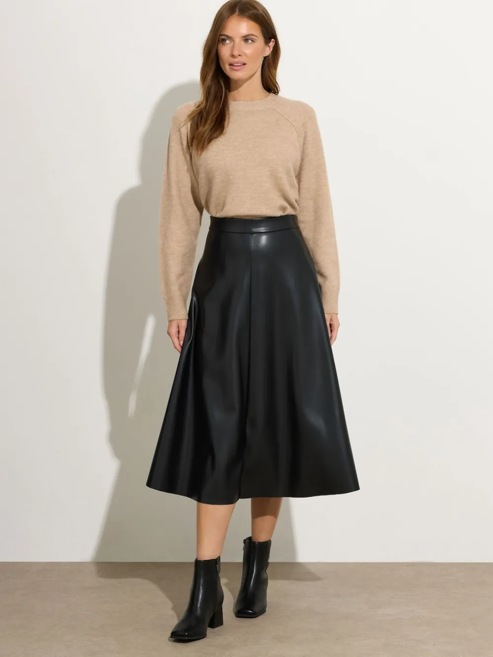 Fit & Fashion Notes: Introduce a new style to your skirt collection with this new-in midi skirt. Made from a faux leather fabric, it features a full skirt design, pleated style in a midi length. Pair with a jumper, coat and heels for a look you can wear confidently in the office and off duty. Features: Midi length Full skirt design Pleated style Made from a faux leather fabric 100% polyurethane Length from approx: 78cm/30.7 Machine washable Model is 5ft 7”/170cm and size UK 10/EU 38. Machine washable. 100% Polyurethane.
