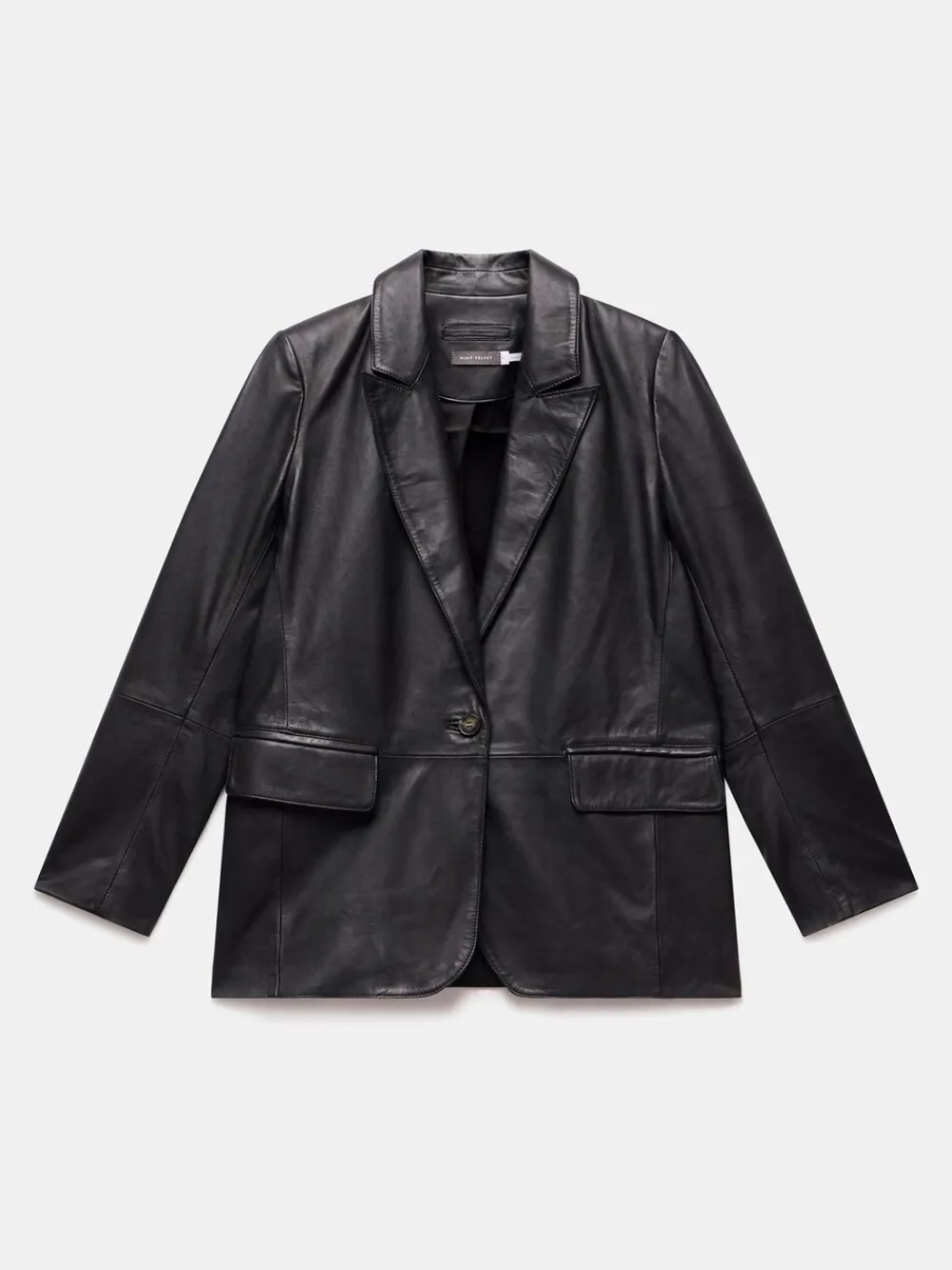 Mint Velvet Black Leather Single Breasted Blazer Sale