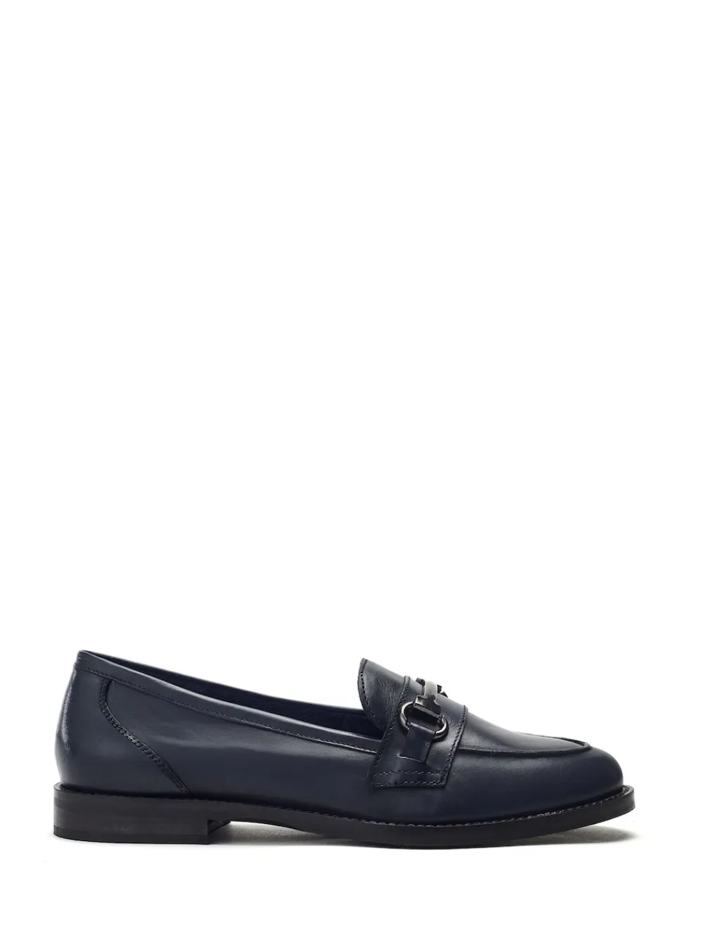 Moda in Pelle Elarra Flat Loafers With Snaffle Trim Blue Hot
