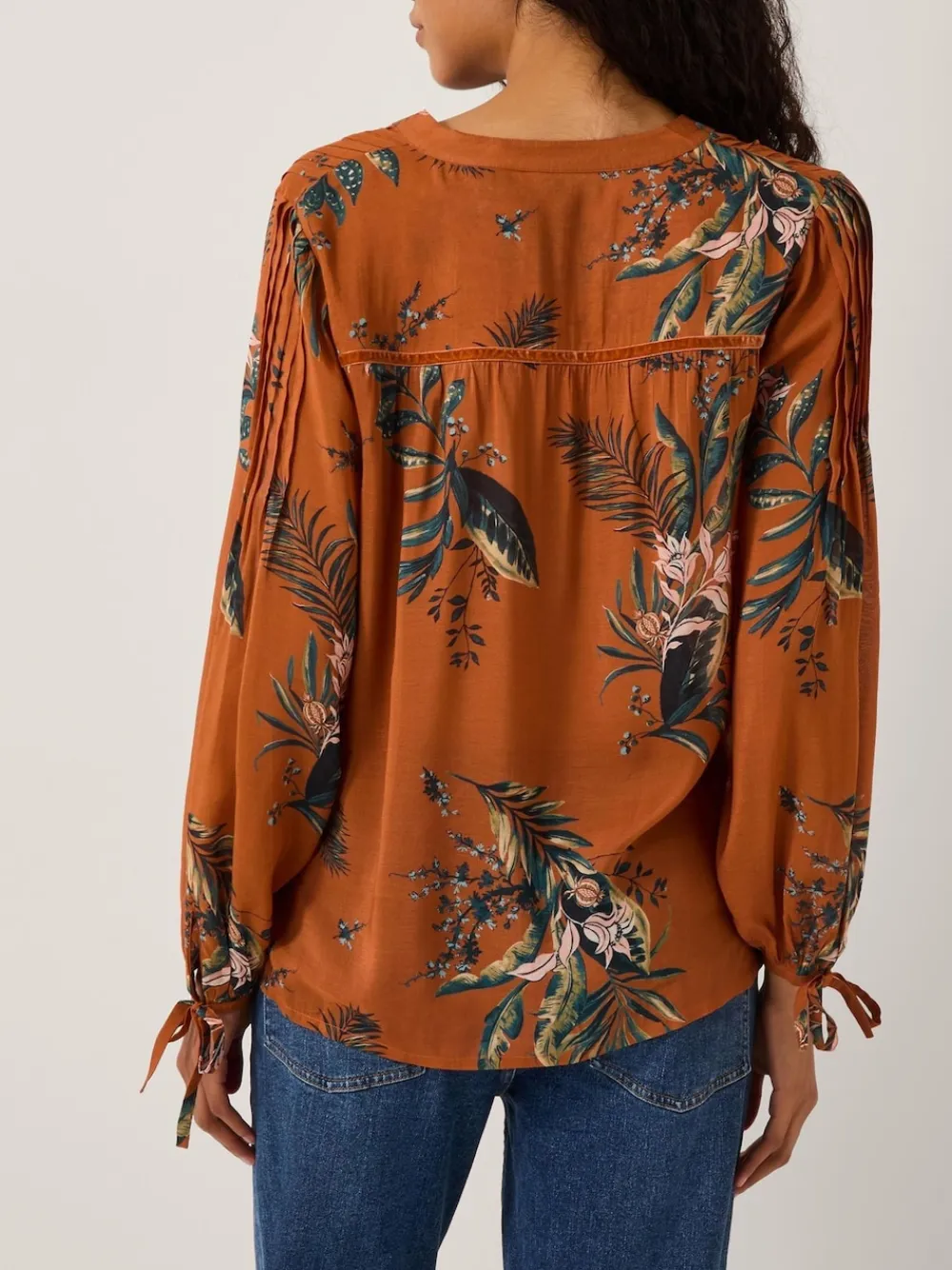 Time to bloom. Whether tucked into skirts or styled with denim, this blouse is a fun addition to your everyday wardrobe. Soaked in a vibrant copper hue, it s decorated with botanical prints and features shirred shoulders, blouson sleeves, and front button fastenings for a relaxed feel. Machine washable. 100% Viscose.