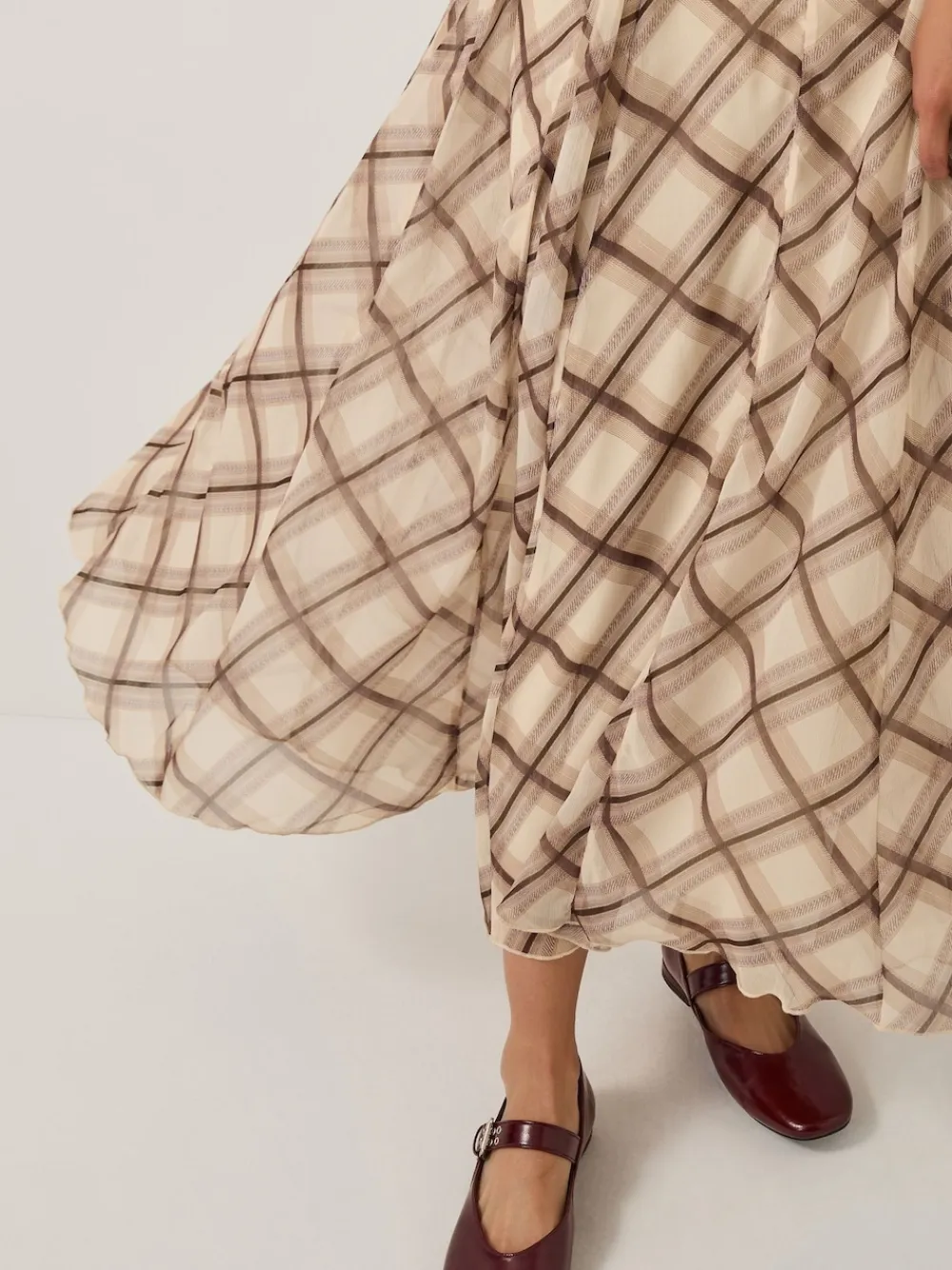 So checked out. Tailored with flouncy pleats in a lightweight fabric so every stride makes a statement, this skirt features a bold checkered pattern in timeless, neutral tones. For a look you can wear all Autumn long, style with a chunky knit and moto boots. Machine washable. Main 100% Polyester. Lining 100% Polyester.