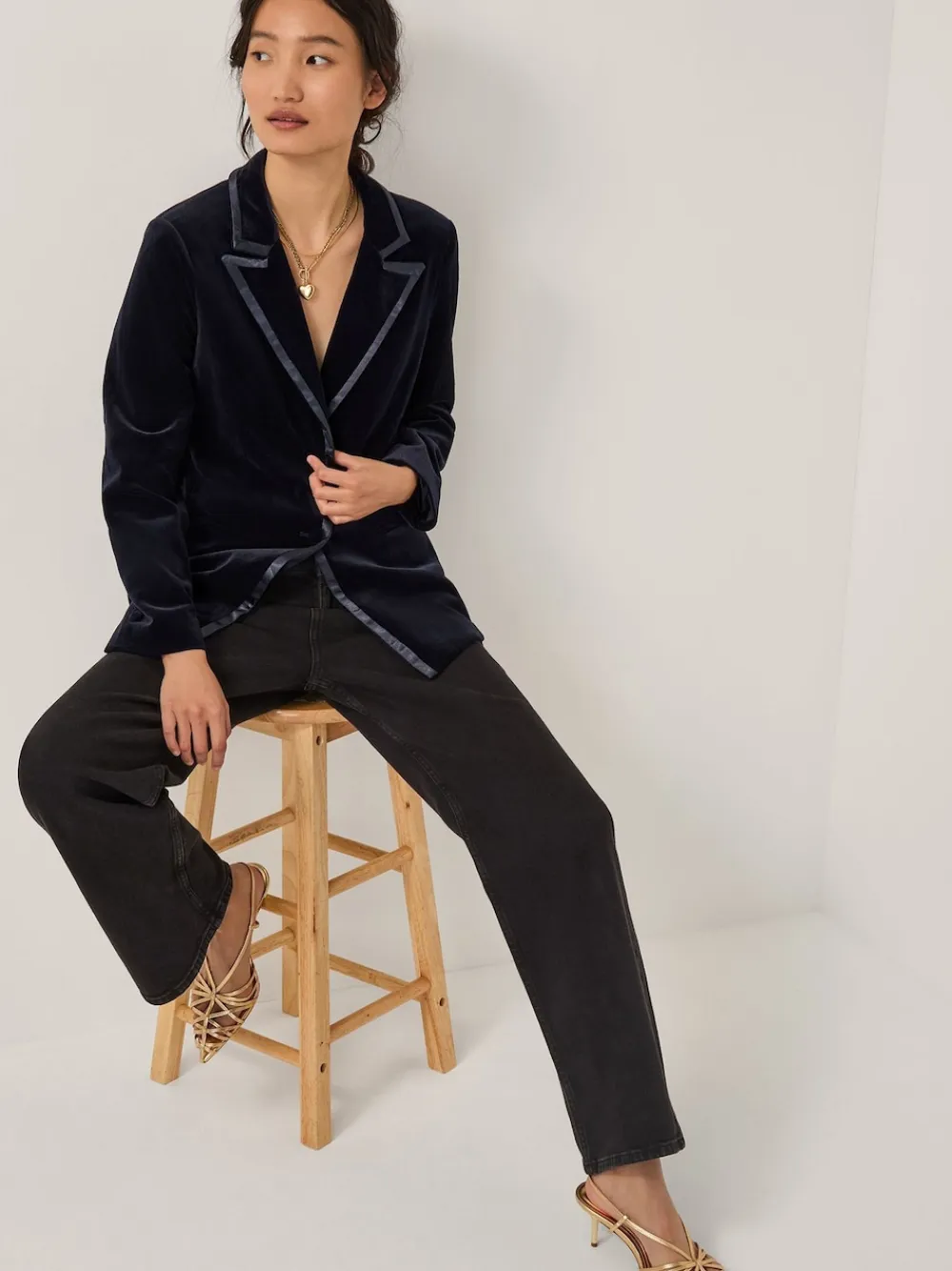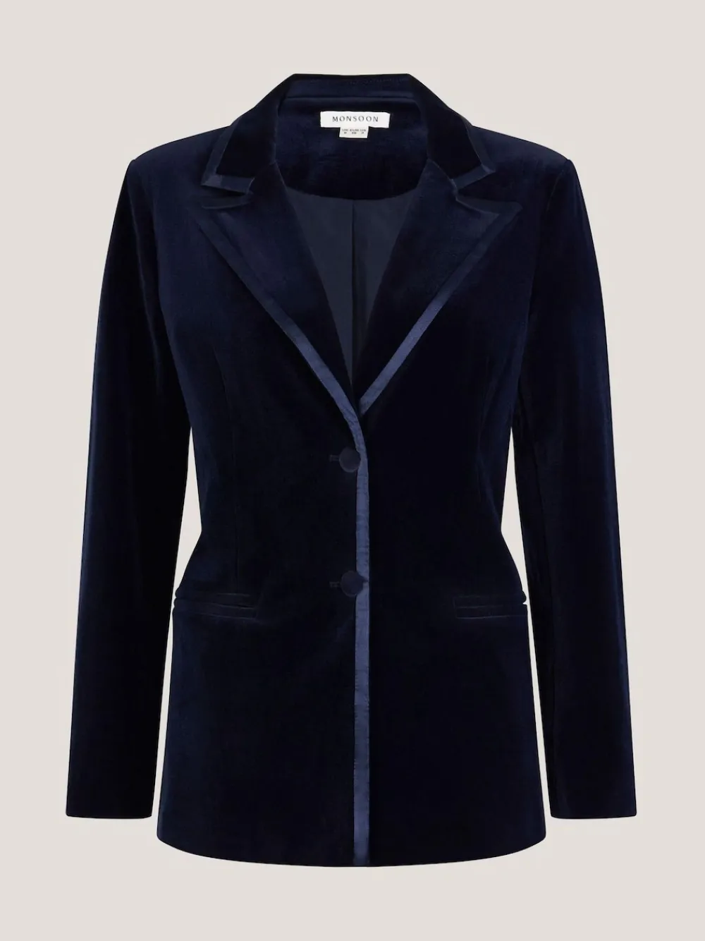Monsoon Mila Single Breasted Velvet Blazer Blue Sale