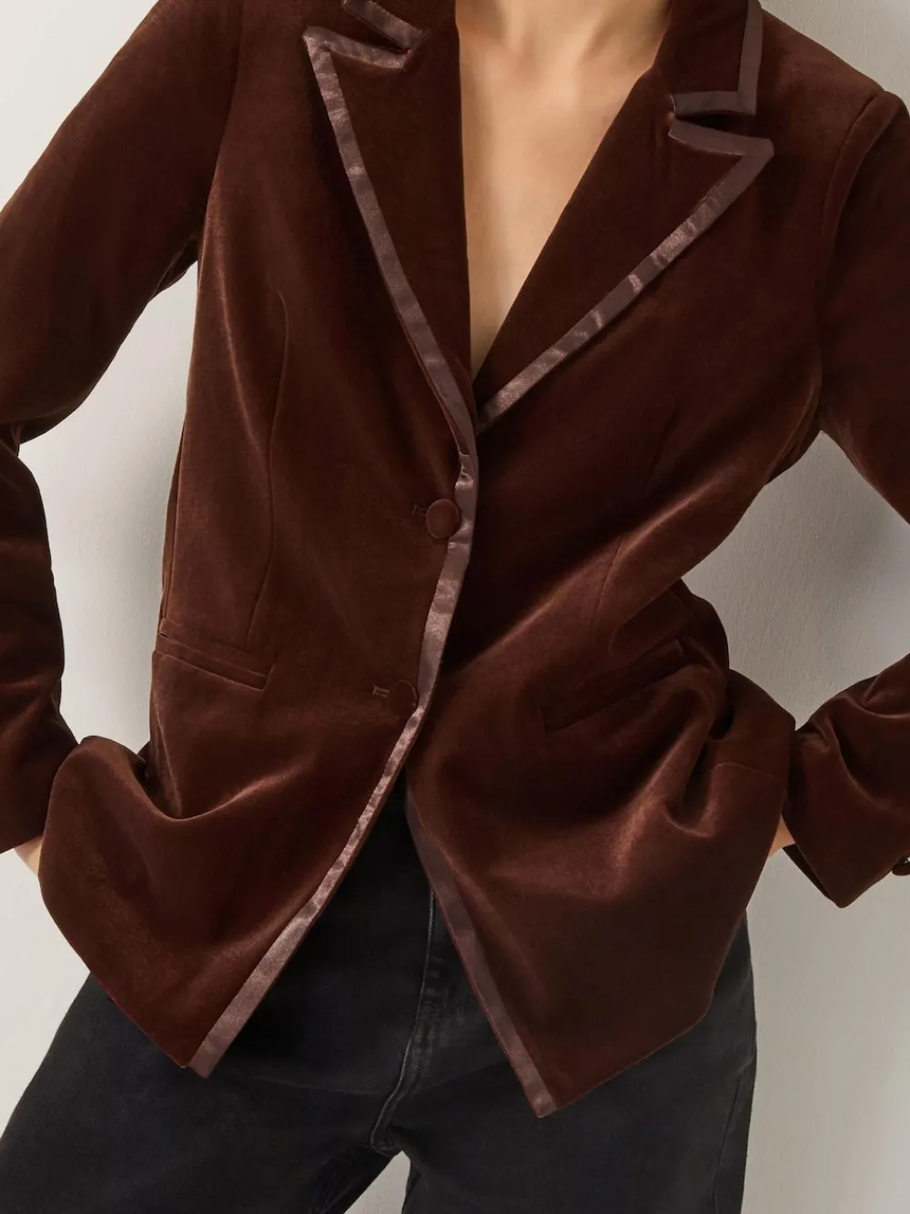 Monsoon Mila Single Breasted Velvet Blazer Brown Sale