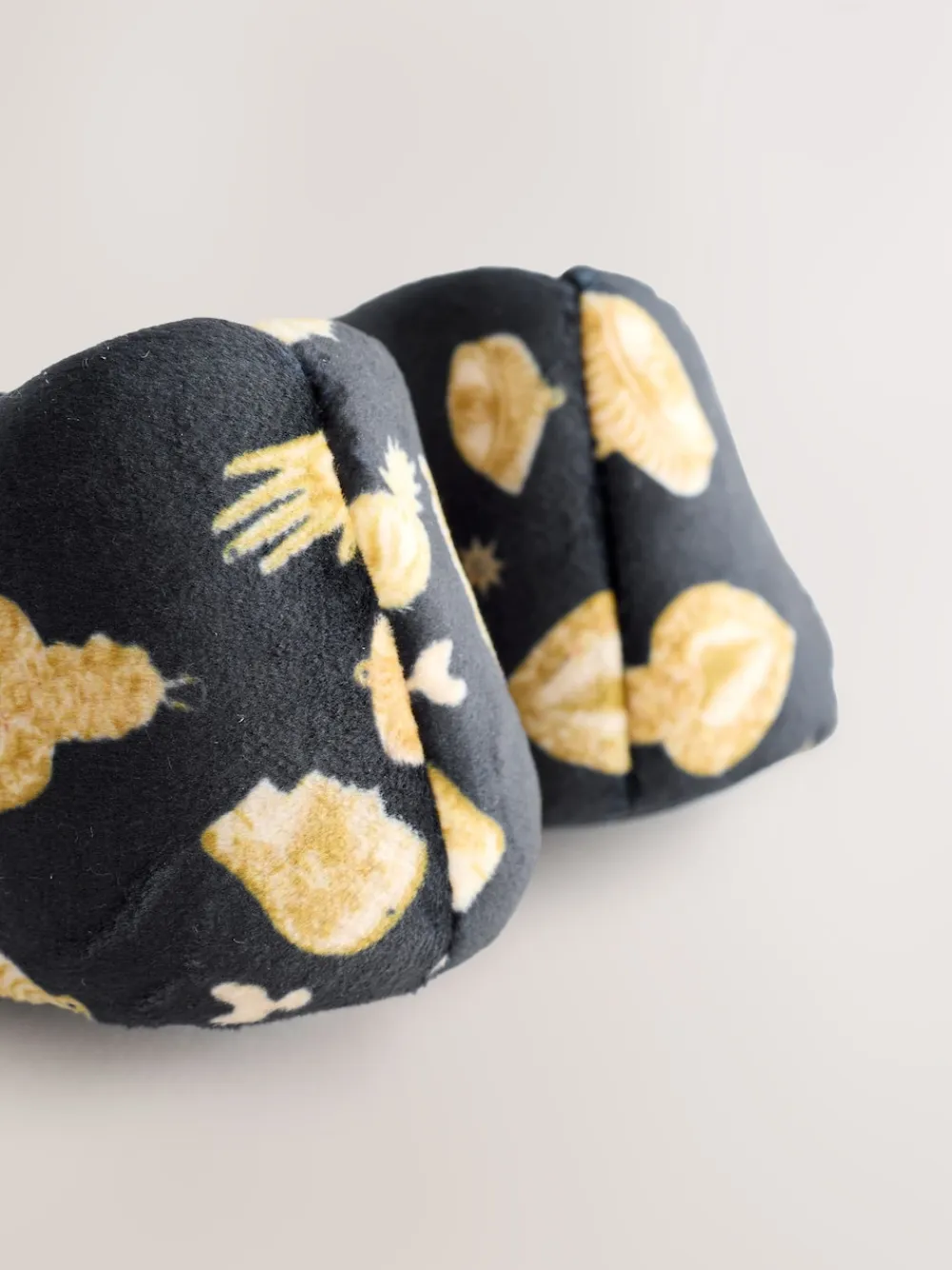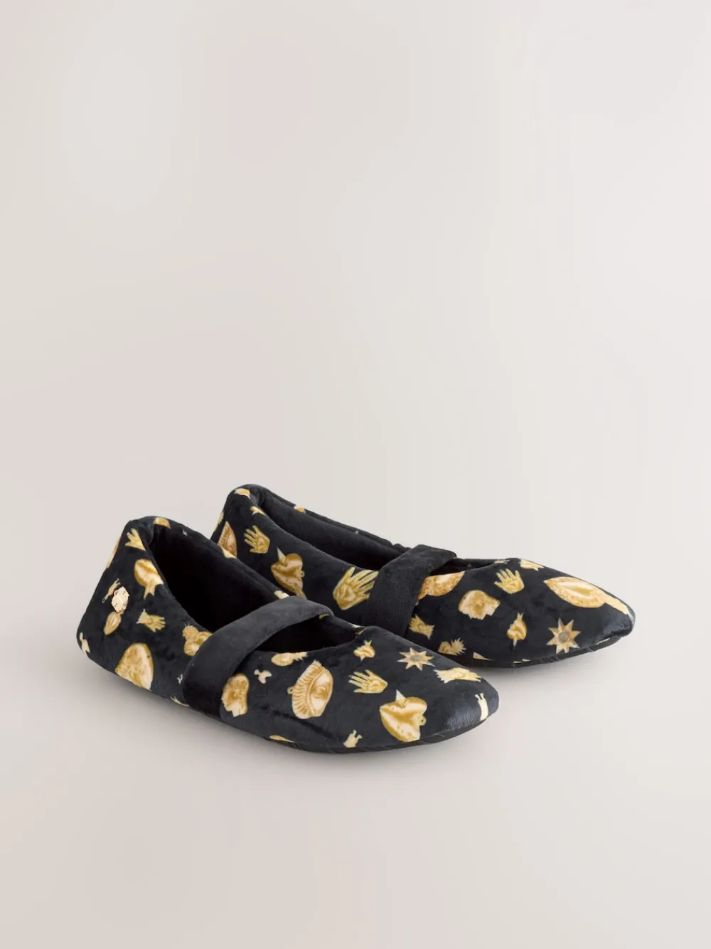 Never Fully Dressed Black/Gold Charm Velour Mary Jane Slippers Online