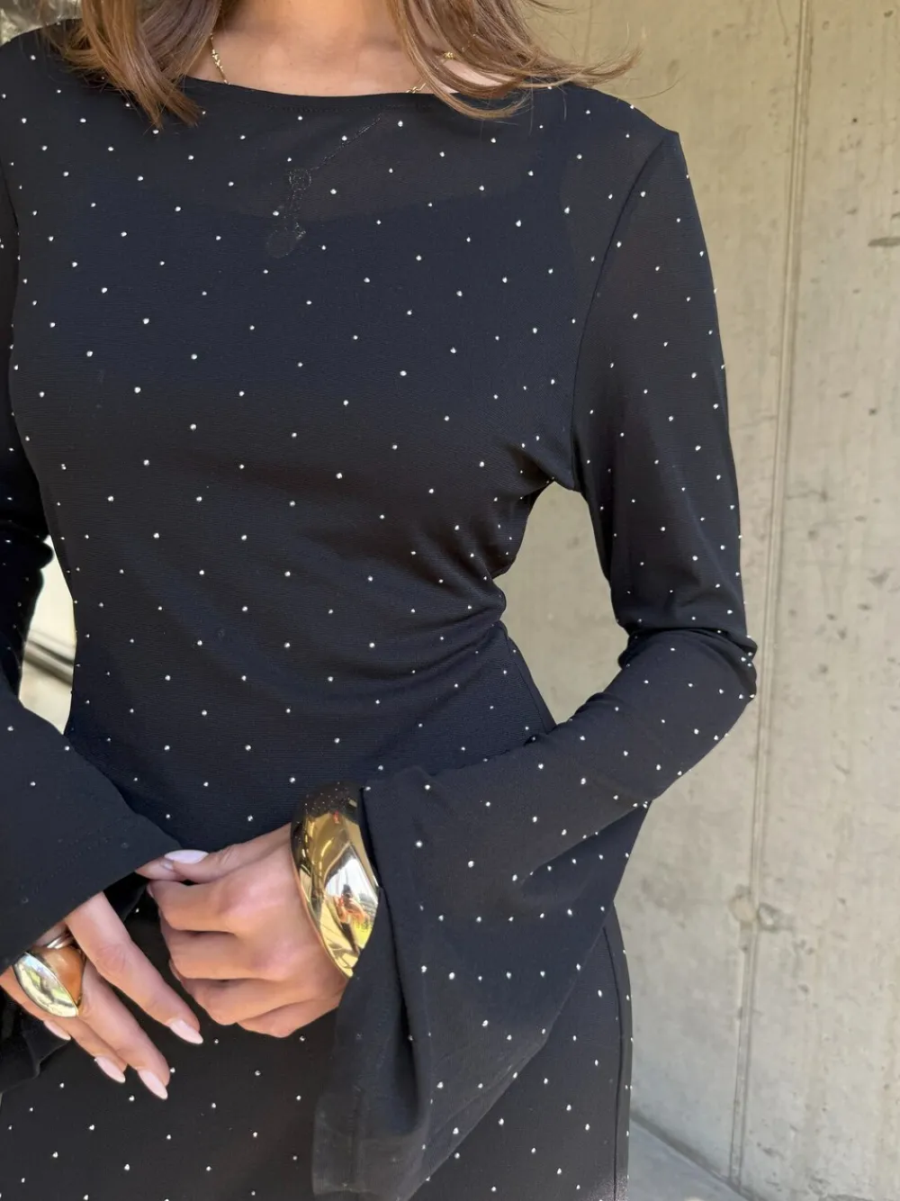 Our bestselling mesh fabric, designed and created in the UK, has lots of stretch and movability, with stud detailing for an extra touch of sparkle! The silky soft base makes it the perfect dress to be worn throughout the seasons. Layer over underwear for a slightly sexier approach, or add some coverage with the slip and pair with some kitten heels for an easy office to evening look. Machine washable. 96% Nylon, 4% Elastane.