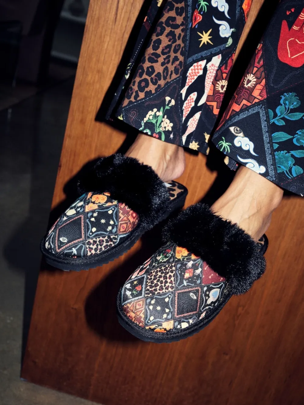 Never Fully Dressed Multi Black Quilted Faux Fur Lined Mule Slippers Online