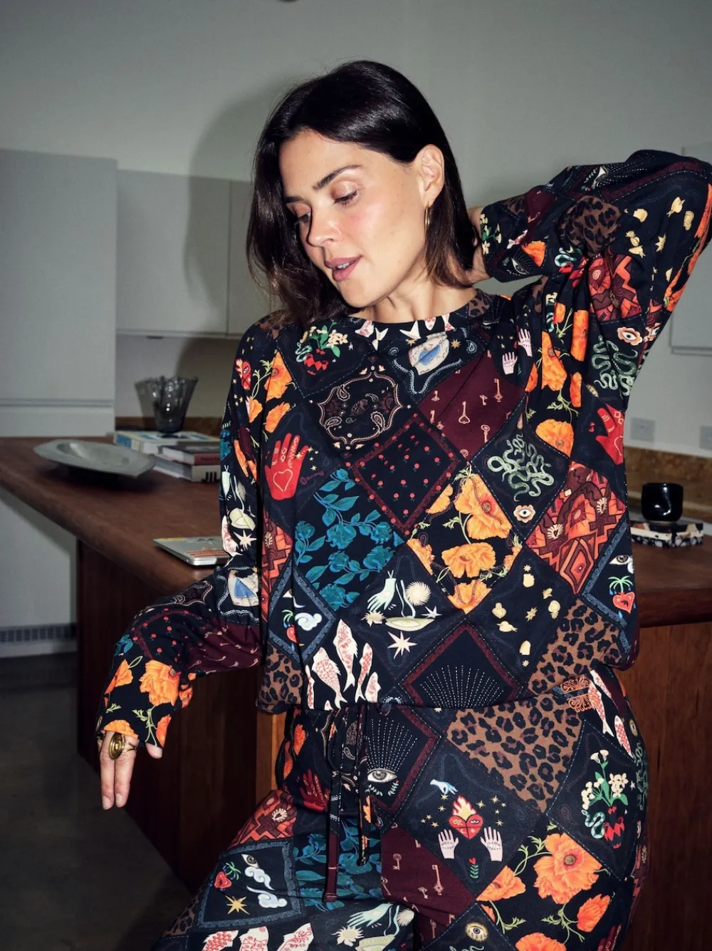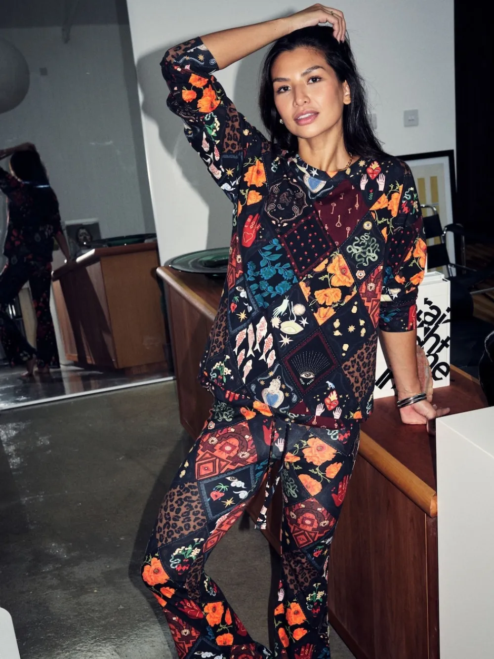 Be the first to review “Never Fully Dressed Night Garden Patch Print Cotton Flare Leg Pyjamas Set New” Cancel reply