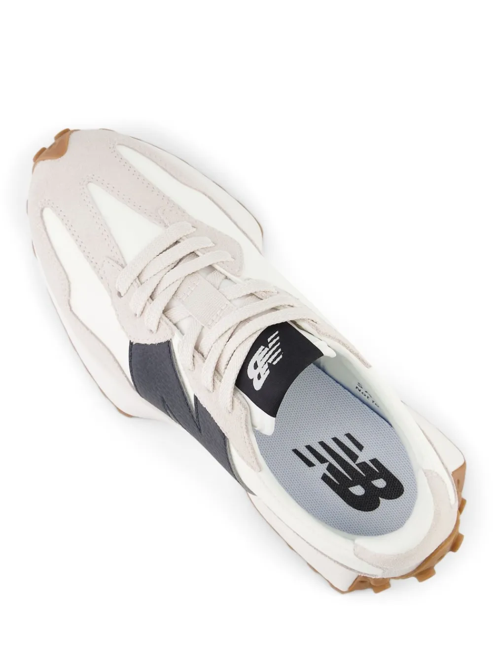 The 327 sheds new light on the 70s as a time of innovation by boldly reshaping classic design elements with a thoroughly contemporary outlook. With an angular reworking of the tried-and-true wedge silhouette, outsize, asymmetrically applied N branding, and wraparound, trail-inspired lug outsole, the 327 provides nothing less than a complete reimagination of our running heritage. Upper – Leather, Textile, Lining and Sock – Textile, Sole – Other Materials.