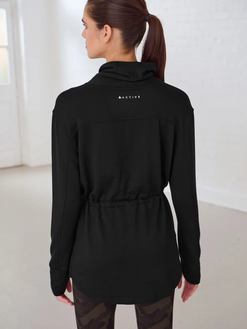 The perfect layer for outdoor activities or to style over your gym outfit for pre and post workout. Our active cowl neck sweat top is made in a soft touch fabric with an adjustable toggle-detail waist for a flattering fit and a cowl neck for added warmth. Adjustable waist Soft touch fabric Cowl neck Machine washable. 68% Viscose, 29% Polyester, 3% Elastane.