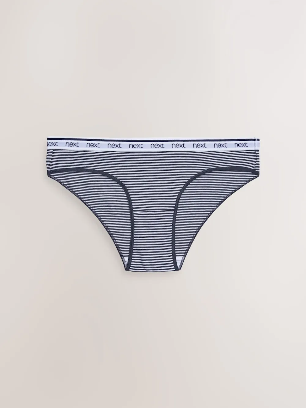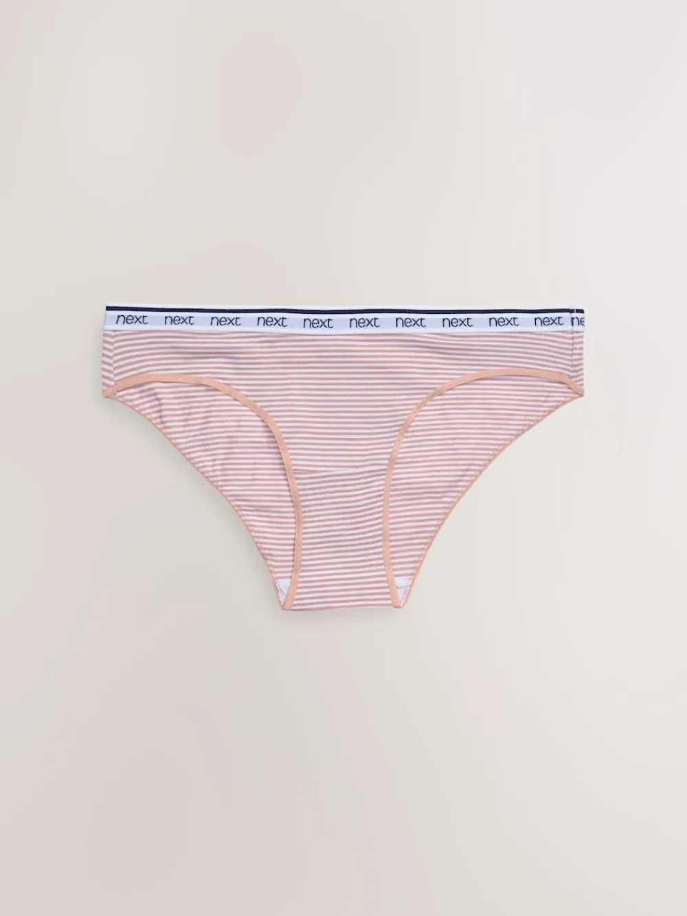 Next Bikini Cotton Logo Knickers 4 Pack Pink/Blue Stripe Online