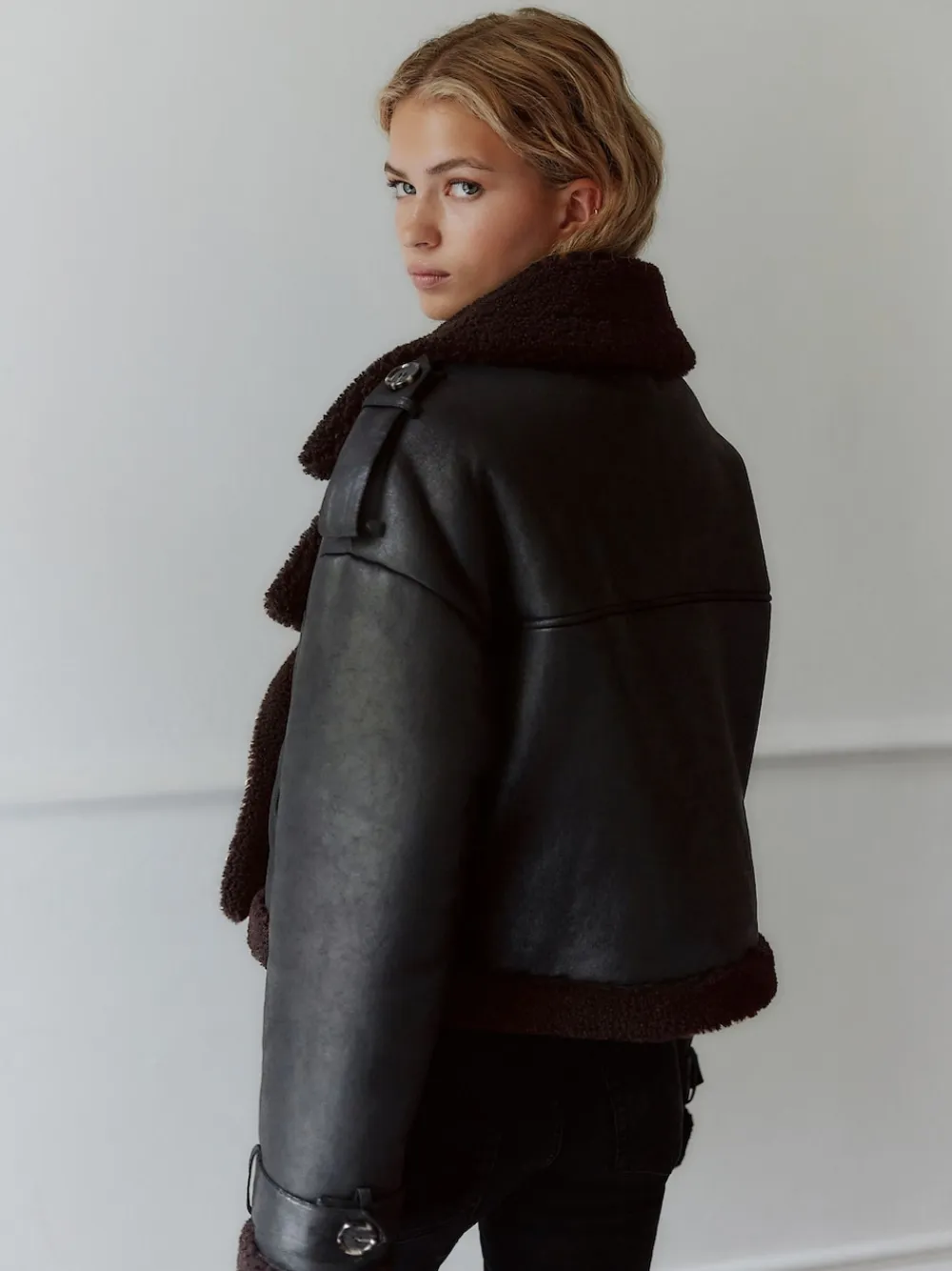 Be the first to review “Next Black/Chocolate Brown Faux Shearling Cropped Aviator Jacket” Cancel reply