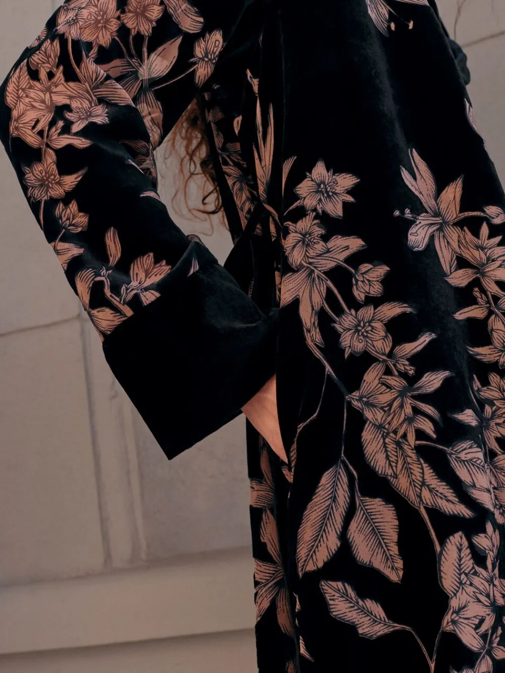 Relax in luxurious comfort with this black velvet robe. The all-over floral print adds a touch of elegance, while the soft, plush velvet fabric feels indulgent against your skin. This sophisticated robe also has a matching slip dress, perfect for a coordinated and comfortable lounging look. All-over floral print Velvet fabric Matching slip dress available Tie waist Long sleeves Machine washable. 65% Viscose, 35% Nylon. Warning: Keep away from fire and flames.