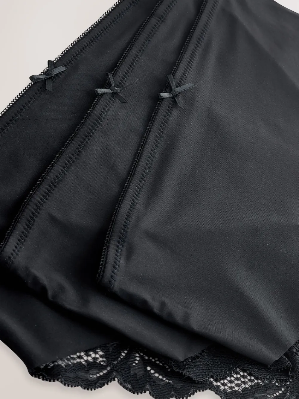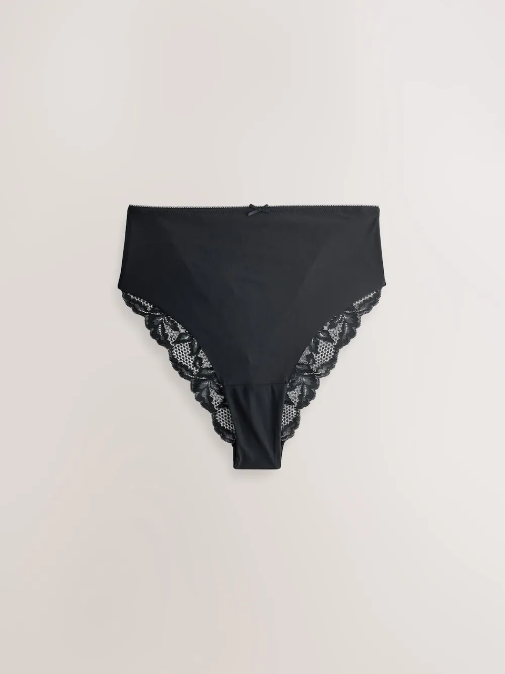 Next Black High Waist High Leg No VPL Lace Back Briefs 3 Pack New