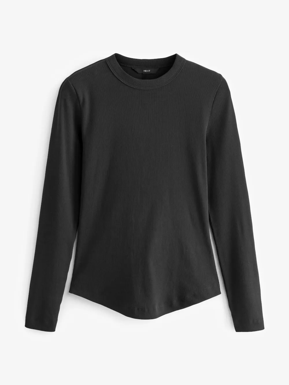 Next Black Long Sleeve Ribbed Crew Neck Top