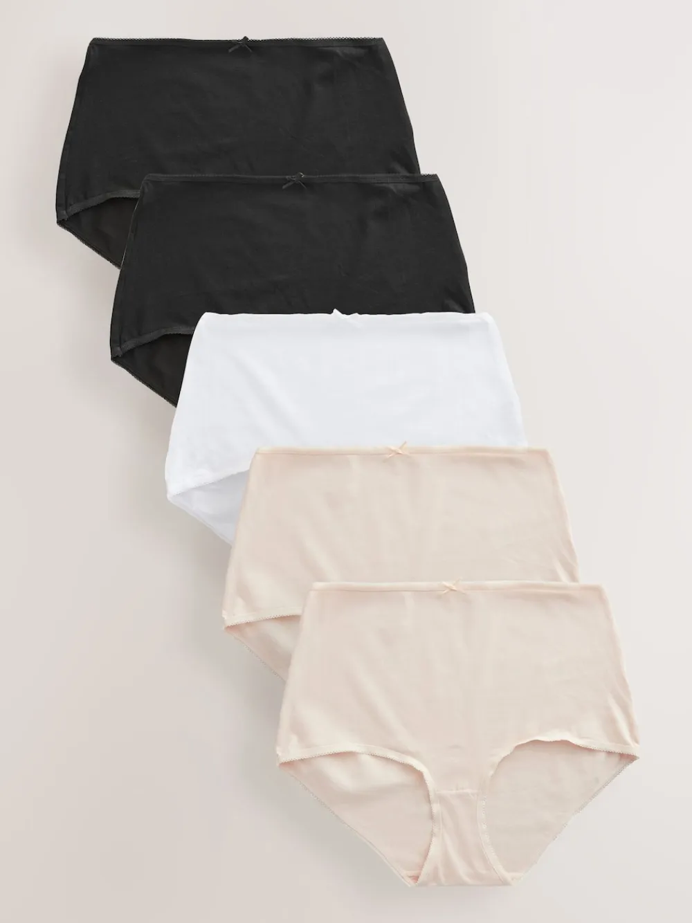 Next Black/Pastel Rose Nude/White Full Brief Cotton Rich Knickers 5 Pack Outlet