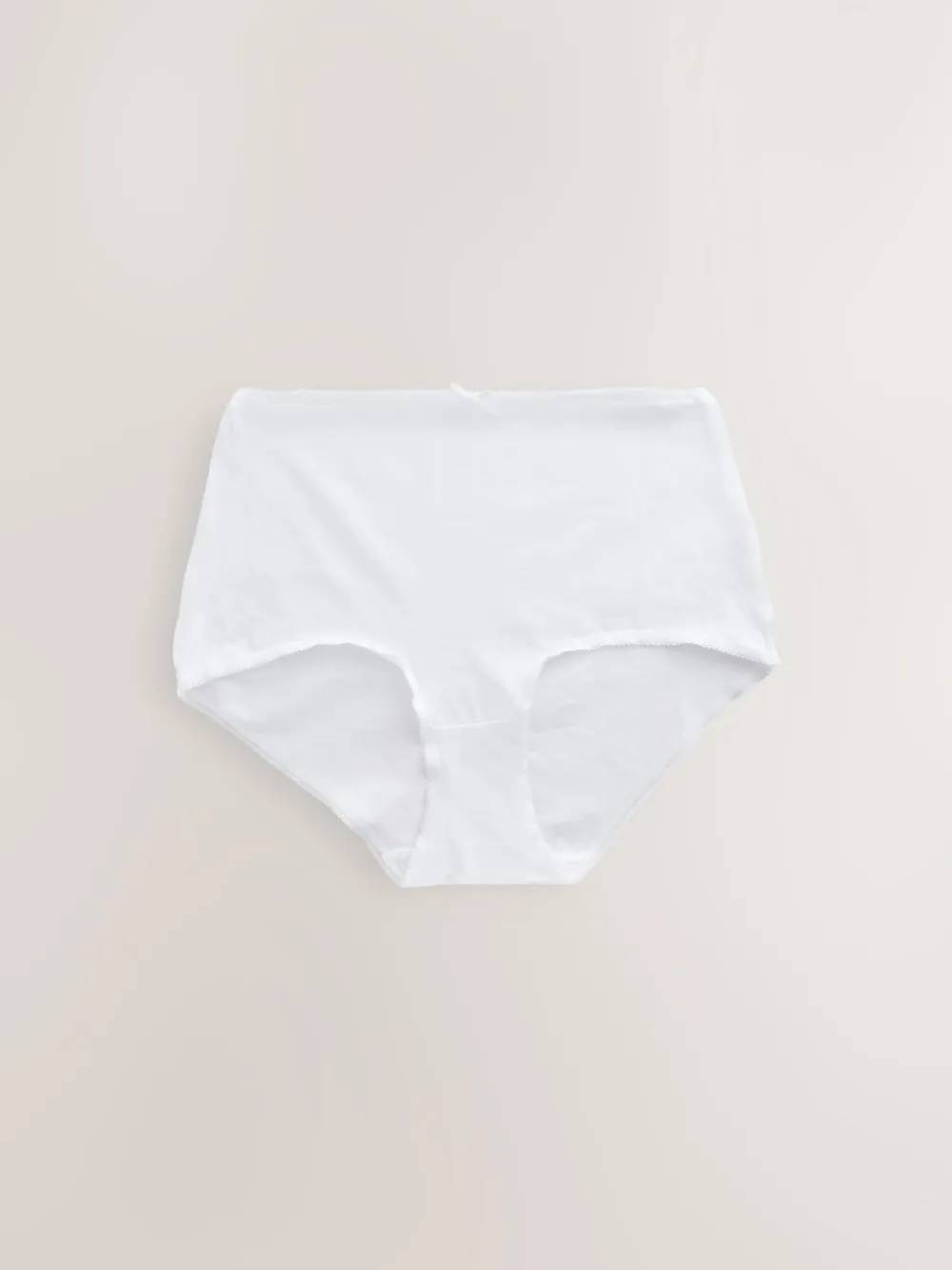 Our bestselling everyday knickers. Naturally breathable cotton for all day comfort. Comes in a range of pack size, shape and colour to suit all customers. Machine washable. 5 x Knickers Main 95% Cotton, 5% Elastane. Gusset 100% Cotton. Items with the curve logo are available in sizes 18 and above.