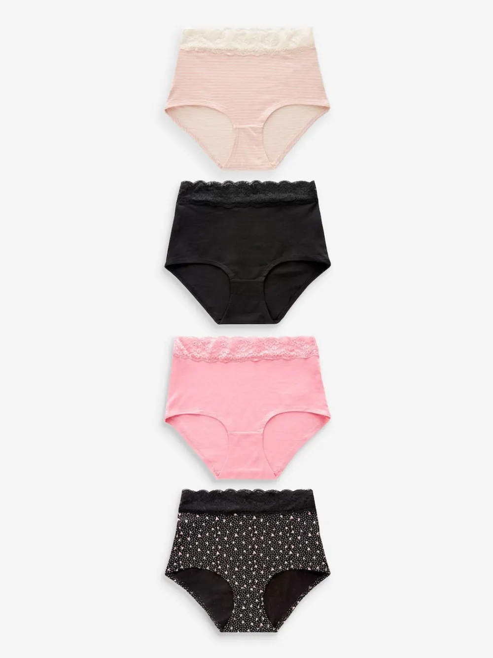 Our bestselling everyday knickers. Naturally breathable cotton for all day comfort. Comes in a range of pack size, shape and colour to suit all customers. Machine washable. 4 x Knickers Main 95% Cotton, 5% LYCRA® XTRA LIFE™ elastane. Gusset 100% Cotton. Items with the curve logo are available in sizes 18 and above.