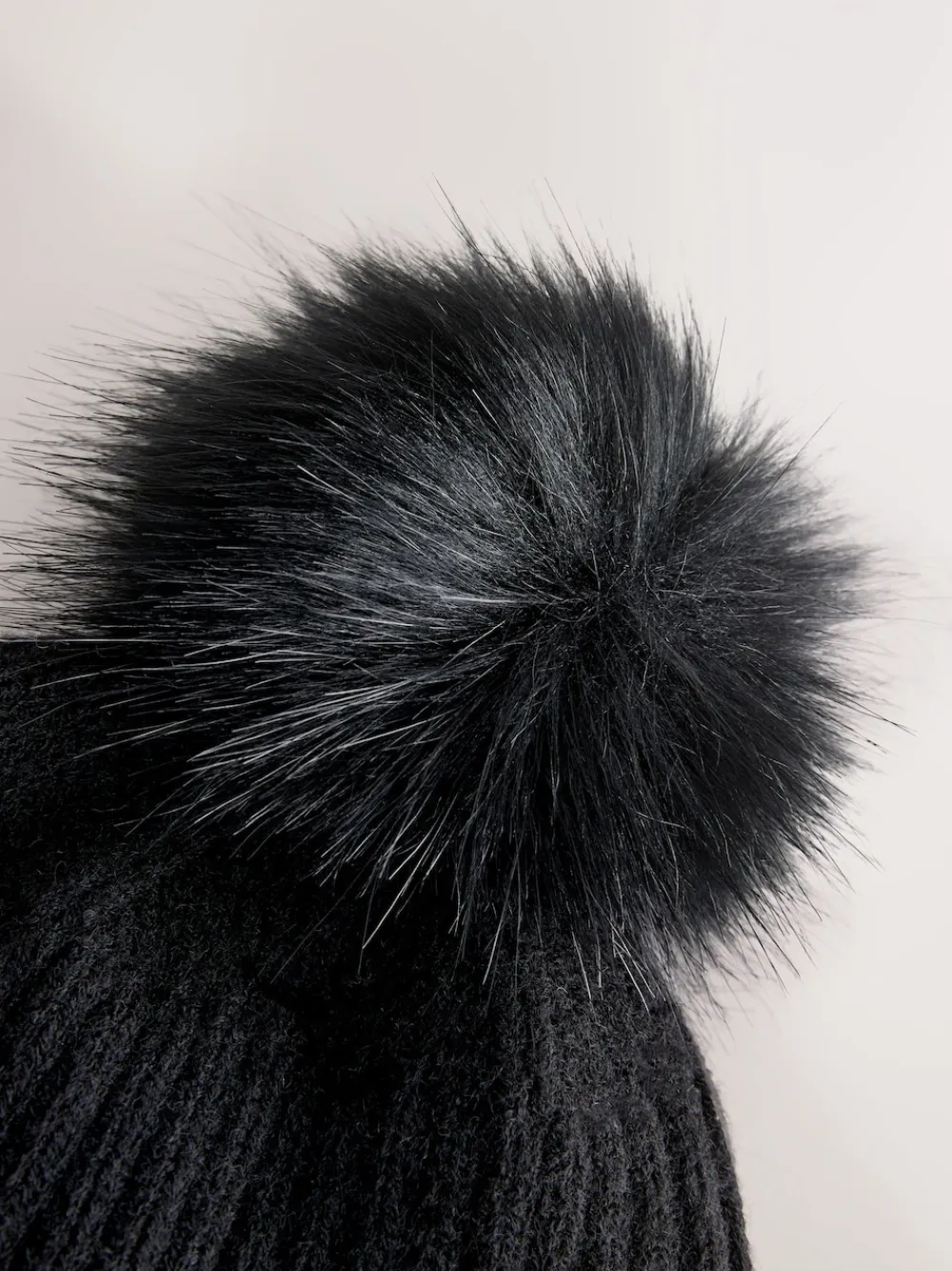 Stay snug and stylish in our rib knit pom pom hat. Rib knit Faux fur pom pom Cosy Main 45% Acrylic, 29% Recycled polyester, 26% Nylon. Trim 51% Acrylic, 38% Modacrylic, 11% Polyester.