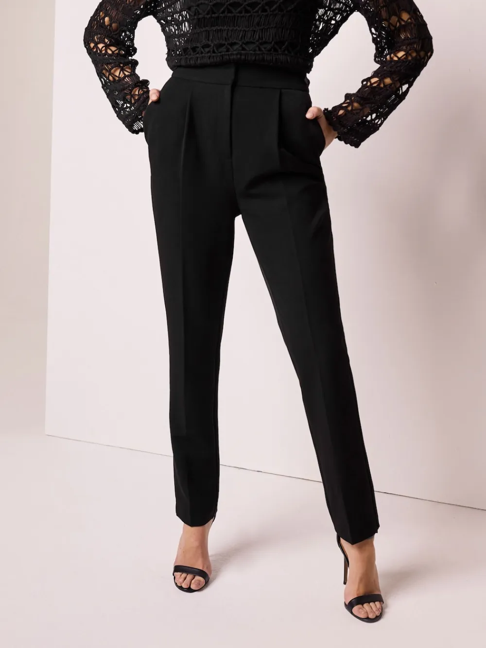 Perfect to dress up or down, these black slim-leg trousers have been designed with women’s curves in mind. They are made to enhance and flatter your shape with waist adjusters on the waistband for a perfect fit, then skimming over the hips and flowing into a slim-leg silhouette. Easy to style, team with a blouse and heels for a simple yet sophisticated look. Regular waist Slim leg Hourglass shape Central leg crease Side adjusters Short to fit inside leg 27″ / 69cm. Regular to fit inside leg 29″ / 74cm. Long to fit inside leg 31″ / 79cm. XL Tall to fit inside leg 33″ / 84cm. XXL Tall to fit inside leg 35″ / 89cm. Machine washable. 78% Recycled polyester, 18% Viscose, 4% Elastane. Items with the curve logo are available in sizes 18 and above., Our tall collection is designed to fit women 5’10” and above. This has been proportionally increased through the body, leg and sleeve to achieve the perfect fit. Available in sizes 8-20.