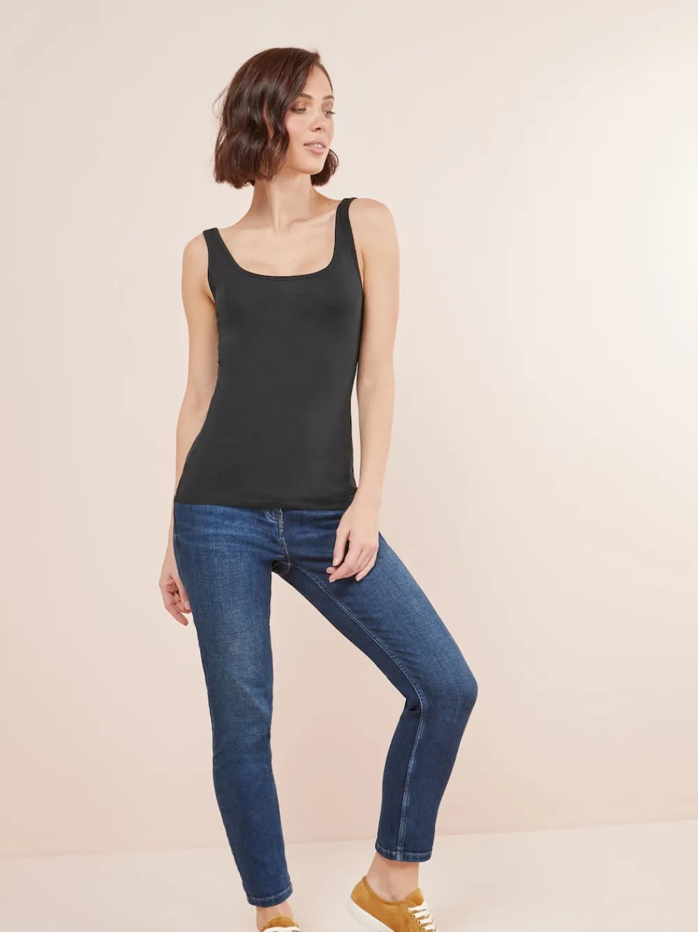 Perfect for layering and pairing with a range of outfits, our thick strap vest is made in a premium cotton and elastane blend for comfort that lasts. Featuring LYCRA® XTRA LIFE keeps your clothing looking new for longer, with lasting comfort and fit. This innovative stretch fabric is lightweight and breathable and will hold its shape wear after wear, wash after wash. Thick strap vest Lightweight and breathable fabric Scoop neckline Machine washable. 95% Cotton, 5% LYCRA® XTRA LIFE™ elastane. Items with the curve logo are available in sizes 18 and above., Our tall collection is designed to fit women 5’10” and above. This has been proportionally increased through the body, leg and sleeve to achieve the perfect fit. Available in sizes 8-20.