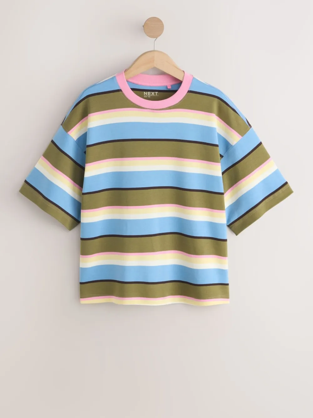 Be the first to review “Next Blue/Green/Pink Striped Relaxed Boxy Elbow Length Crew Neck T-Shirt Sale” Cancel reply