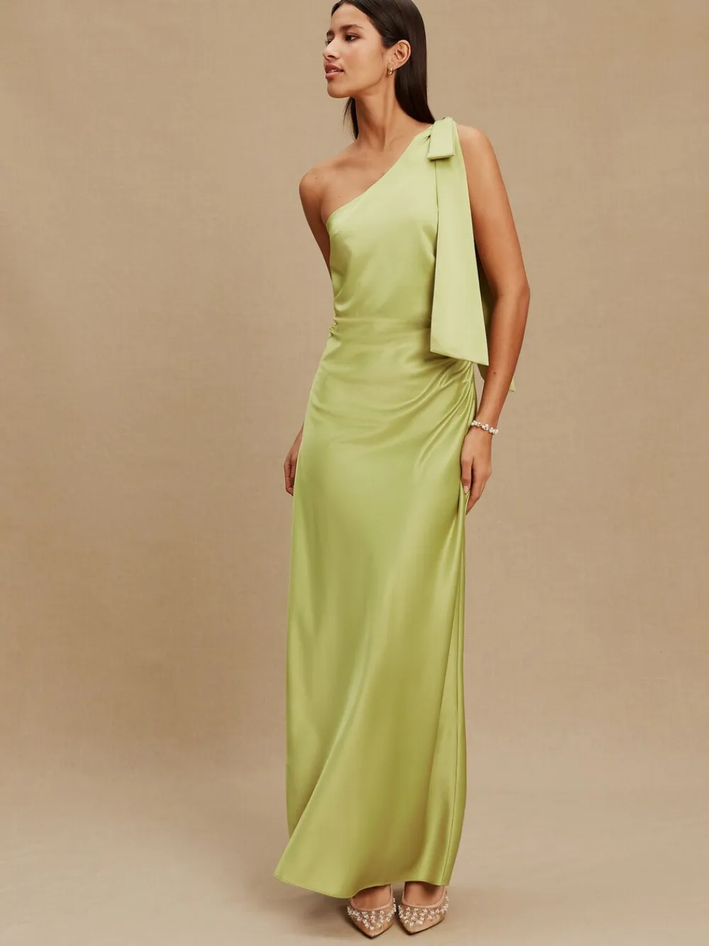 Next Bow One Shoulder Maxi Bridesmaid Dress Green Discount