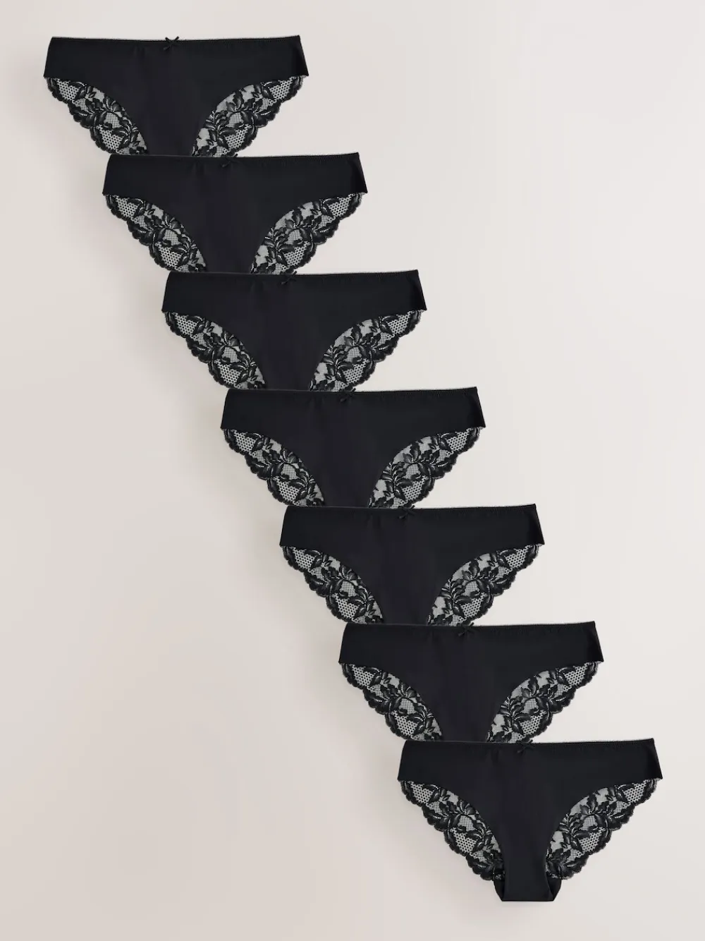 Next Brazilian Lace Back NVPL Knickers 7 Pack Black New