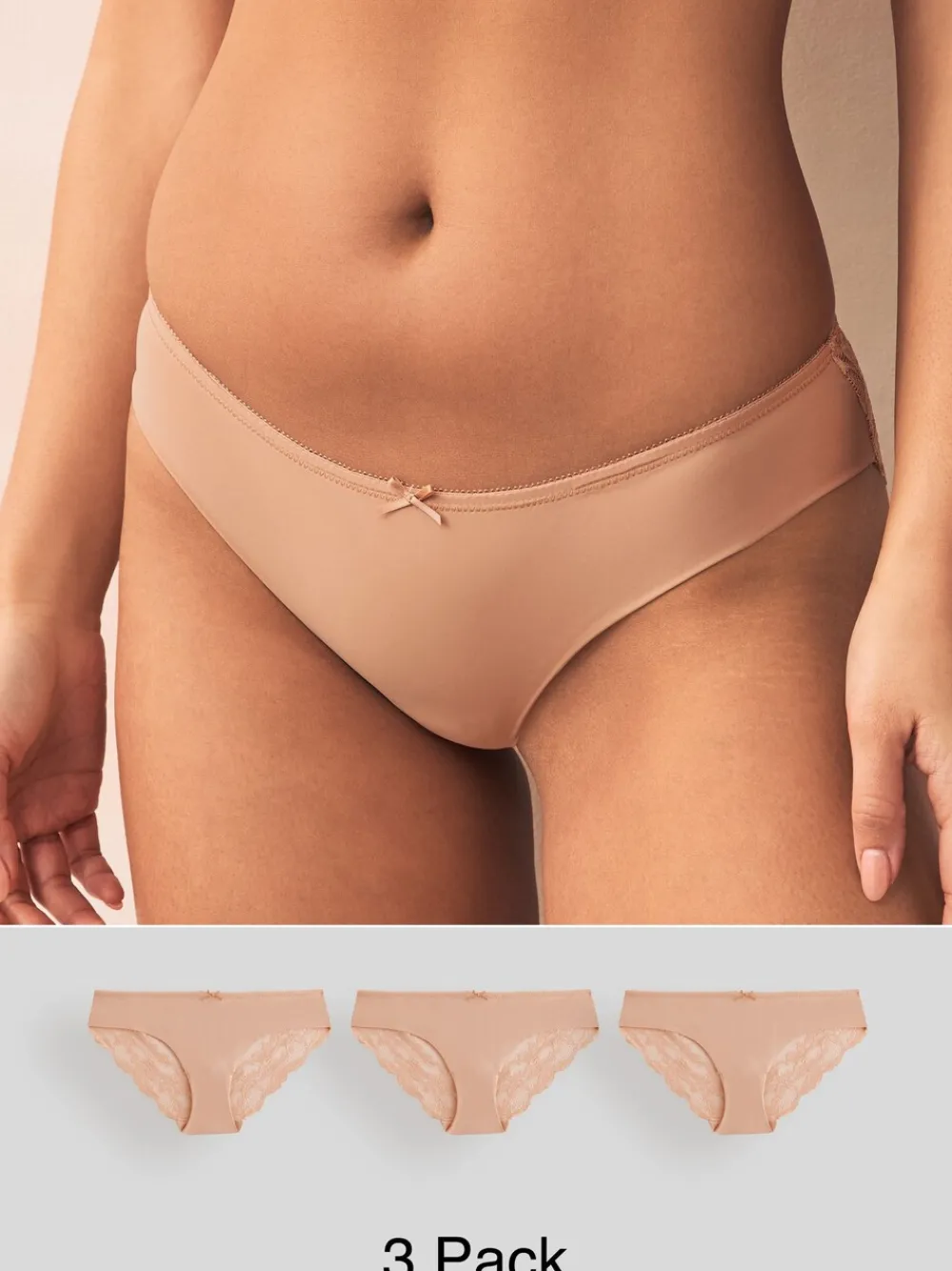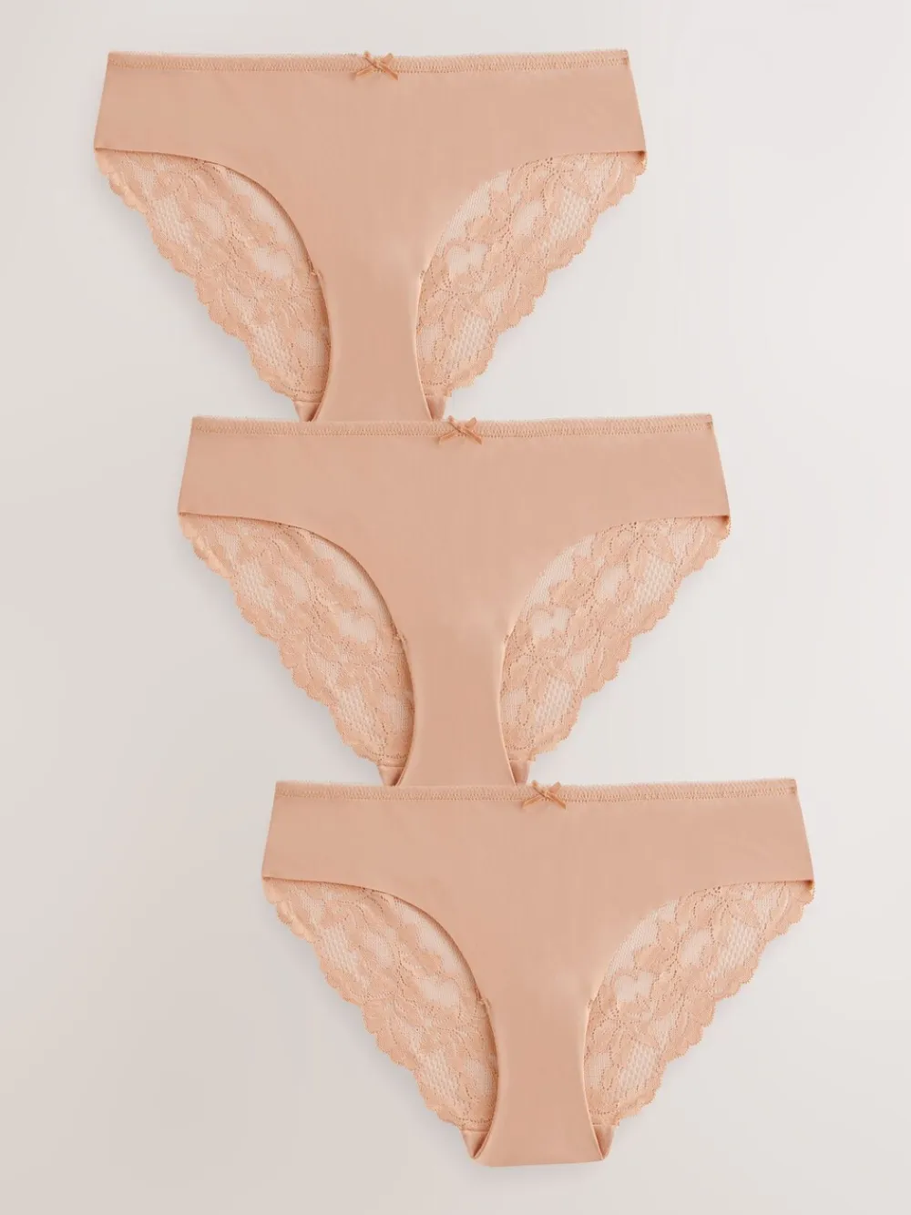 Next Brazilian No VPL Lace Back Briefs 3 Pack Pastel Rose Nude Online