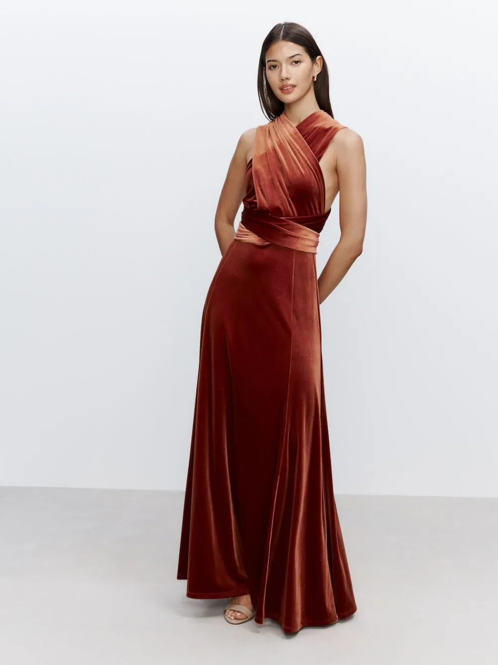 Next Bridesmaid Velvet Multiway Maxi Dress Rust Brown Best