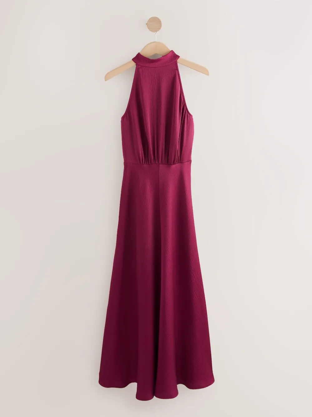 Next Burgundy Red Textured Satin Halter Sleeveless Midi Dress Discount
