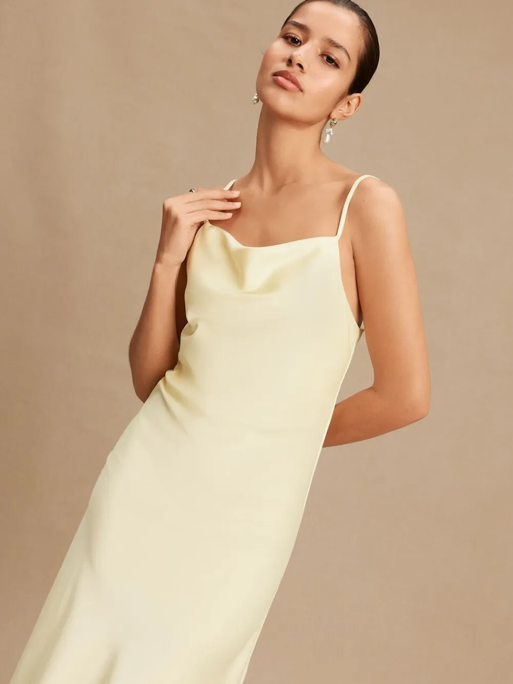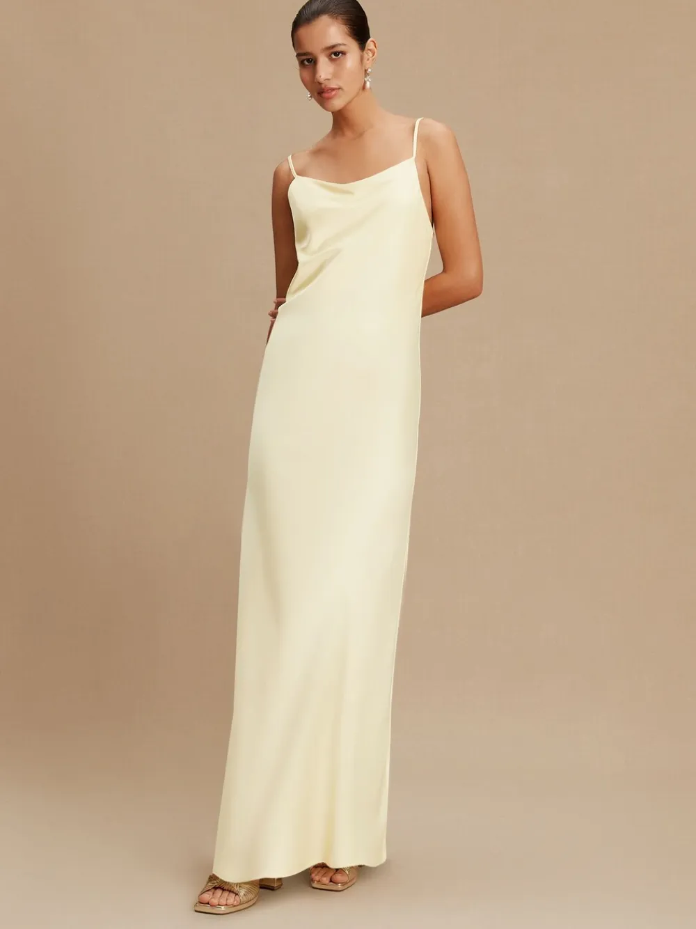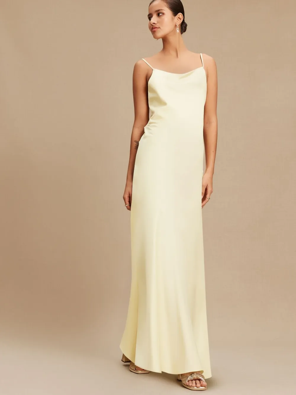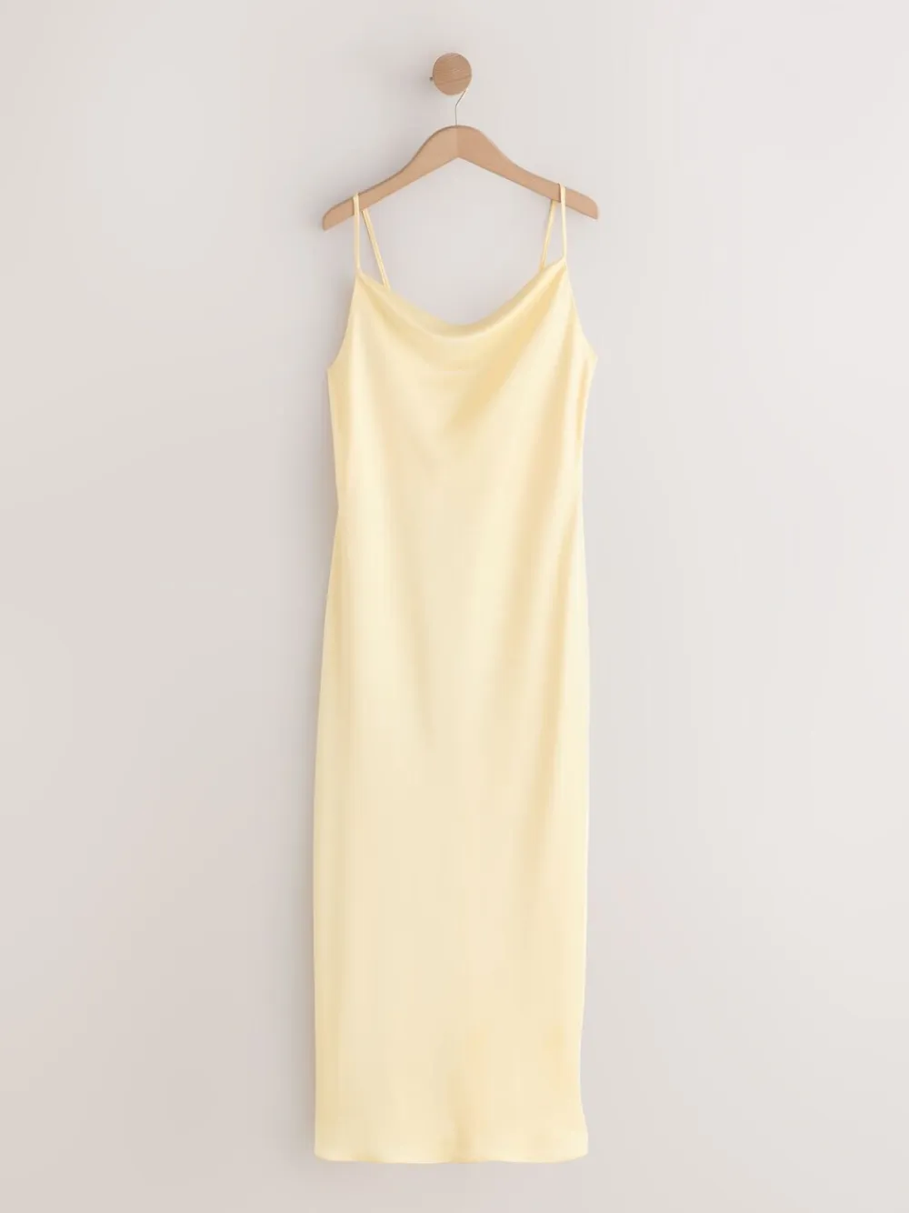 Next Buttermilk Yellow Satin Cowl Neck Wedding Guest Bridesmaid Maxi Dress Hot