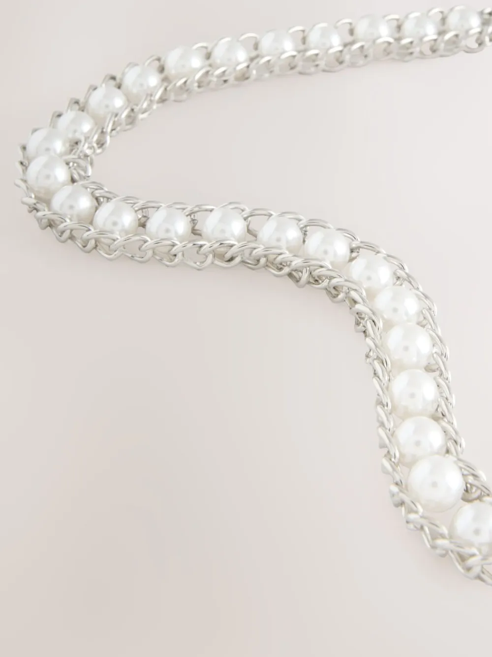 Next Chain Belt Silver Tone Pearl Bead Hot