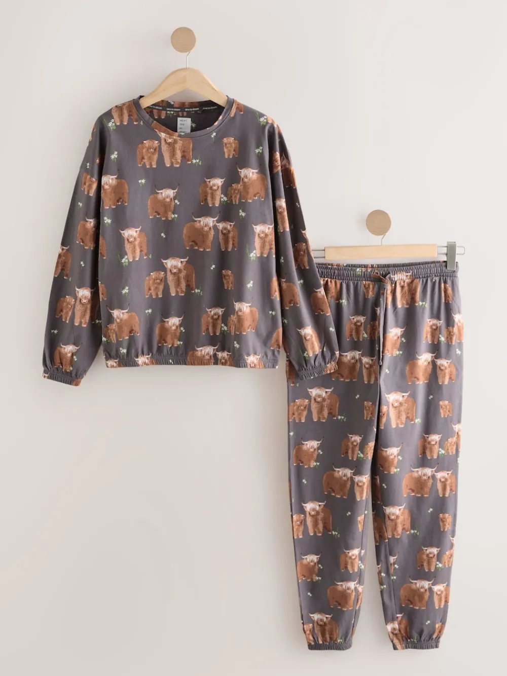 Next Charcoal Grey Hamish The Highland Cow Long Sleeve Pyjamas Hot