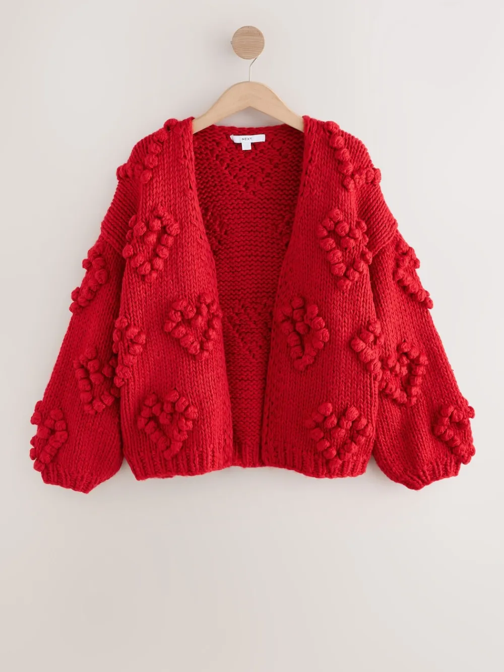 Next Cherry Red Hand Stitch Heart Detail Cardigan New