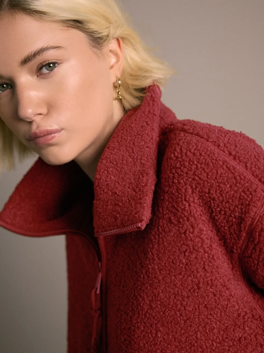 Next Cherry Red Soft Touch Cosy Teddy Borg Quarter Zip Fleece New