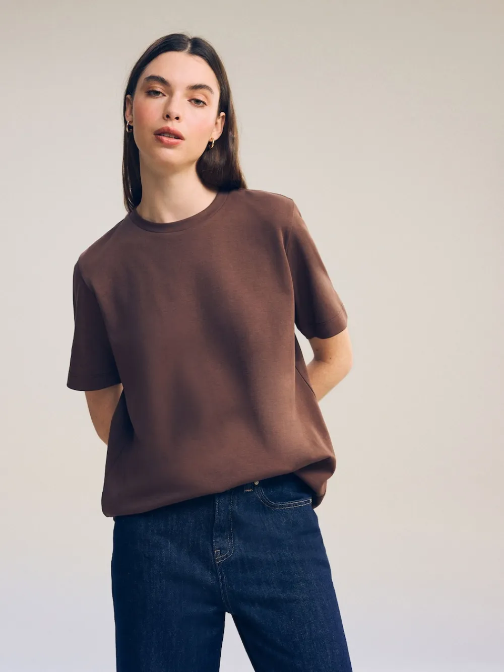 This product has a looser fit than usual, we recommend sizing down. Made from the softest cotton and offering a heavyweight finish, our short-sleeved chocolate brown T-Shirt is a wardrobe must-have. Boasting a crew neck and a boxy fit, we know you will get some serious enjoyment from This chocolate brown classic T-Shirt. Team it with jeans and boots for an effortless look. Heavyweight finish Crew neck Boxy fit Machine washable. 95% Cotton, 5% Elastane. Items with the curve logo are available in sizes 18 and above.
