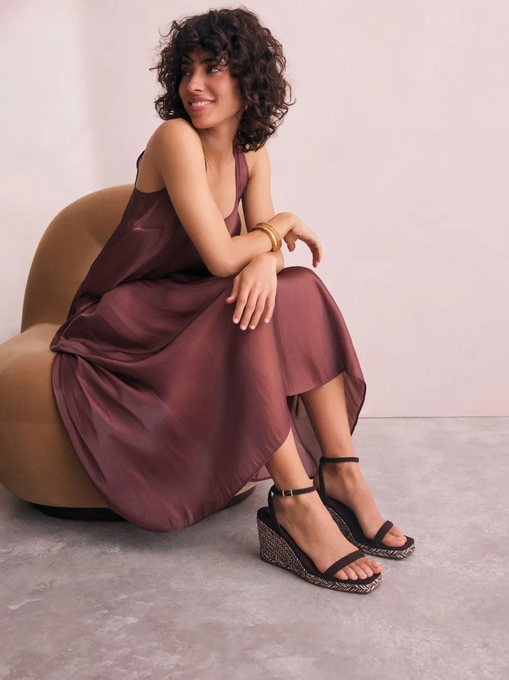 Add some glam to your summer sandal selection. These stylish sandals have a strappy upper with an open toe, a Forever Comfort® footbed for comfortable padding and a high wedge platform heel, finished with a woven trim. Strappy upper Open toe Forever Comfort® footbed Wedge heel Woven detailing Heel height 9.5cm. Upper – Textile, Lining & Sock – Other Materials, Textile, Sole – Other Materials.