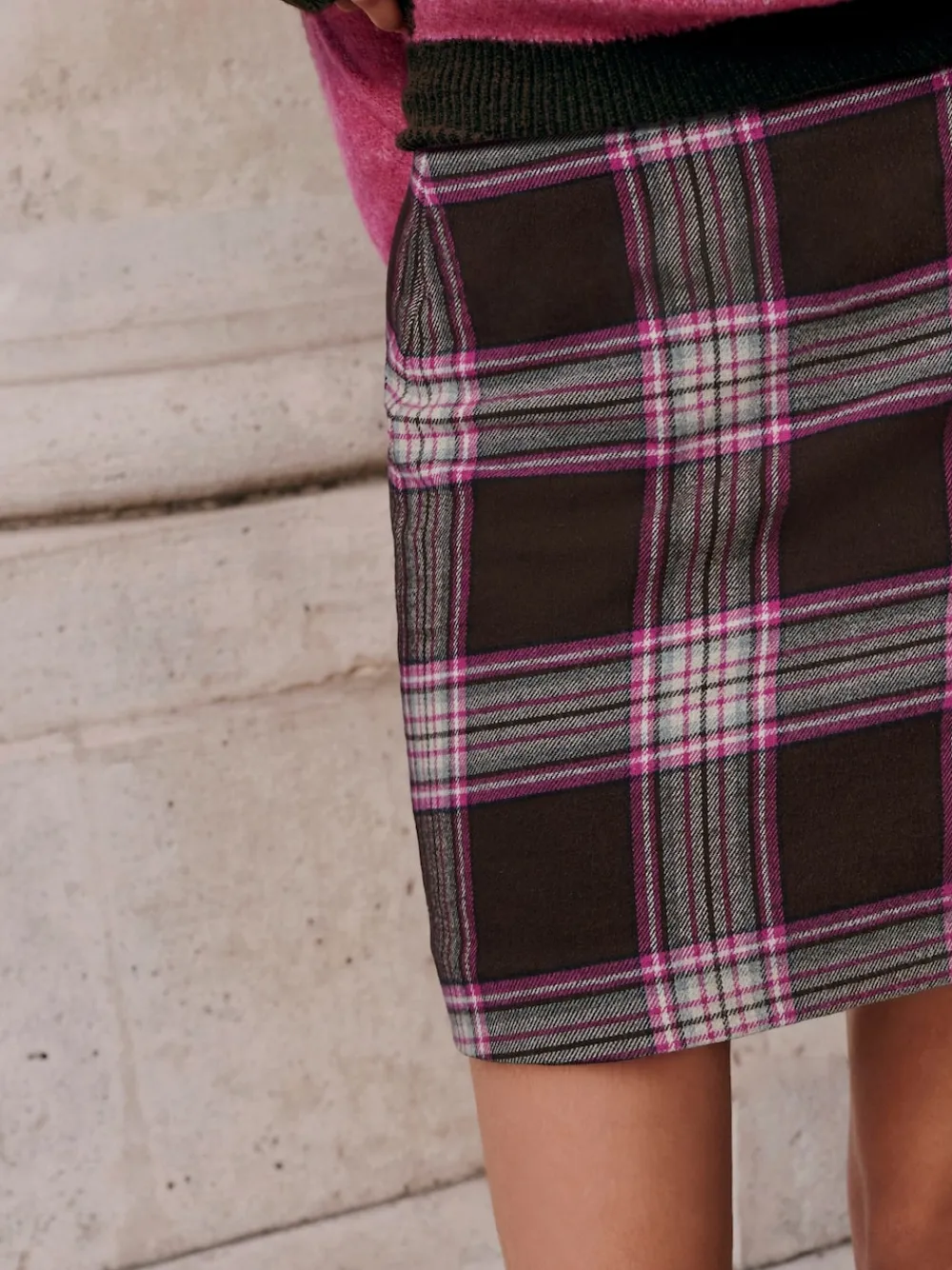 Embrace a timeless classic for fashion’s favourite season with this chocolate and pink check mini skirt. Crafted from premium Italian fabric, it features a traditional check print and a flattering pleated A-line silhouette that moves with you. Nova Fides cotton Pleated A-line silhouette All-over check print Regular waistband to hem 16″ / 41cm. Machine washable. 100% Cotton. Items with the curve logo are available in sizes 18 and above.