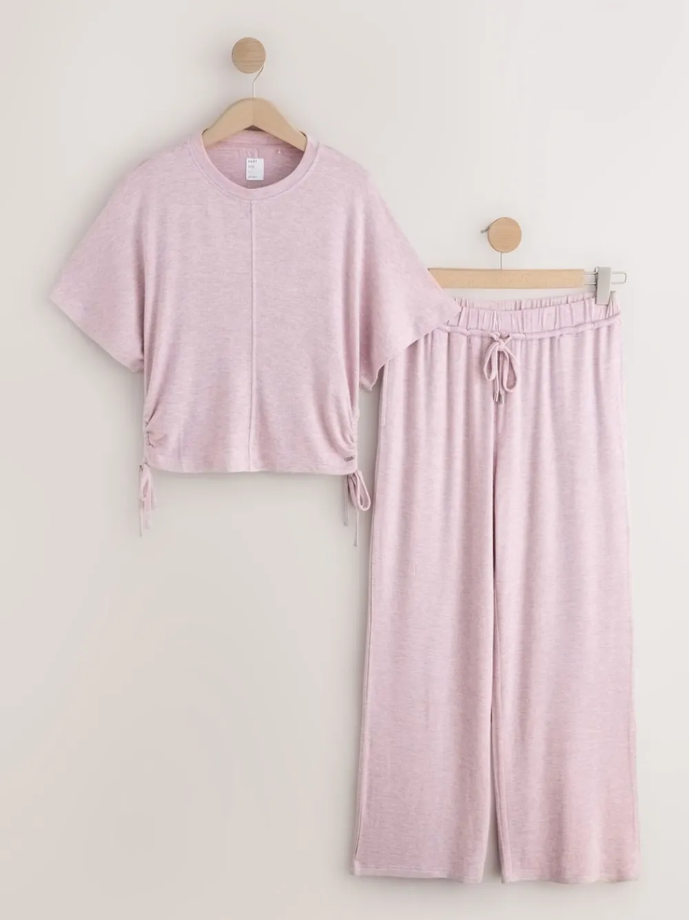 These Cosy Pyjamas redefine downtime with understated luxury and comfort. Crafted from a super soft knitlook fabrication, the top features a chic drawstring detail, complemented by comfortable tie-waist trousers. This set offers unparalleled comfort and a distinctive, less ordinary aesthetic for elevated relaxation. Super soft knitlook fabrication Chic top drawstring detail Comfortable tie-waist trousers Versatile two-piece set Machine washable. Pyjama Top and Pyjama Bottom 76% LENZING™ ECOVERO™ Viscose, 21% Recycled polyester, 3% Elastane. Warning: Keep away from fire and flames., Our tall collection is designed to fit women 5’10” and above. This has been proportionally increased through the body, leg and sleeve to achieve the perfect fit. Available in sizes 8-20.