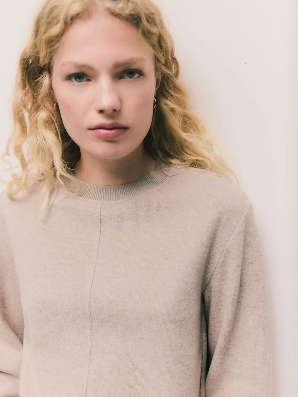 Next Cosy Soft Touch Rib Crew Neck Jumper Neutral Beige New