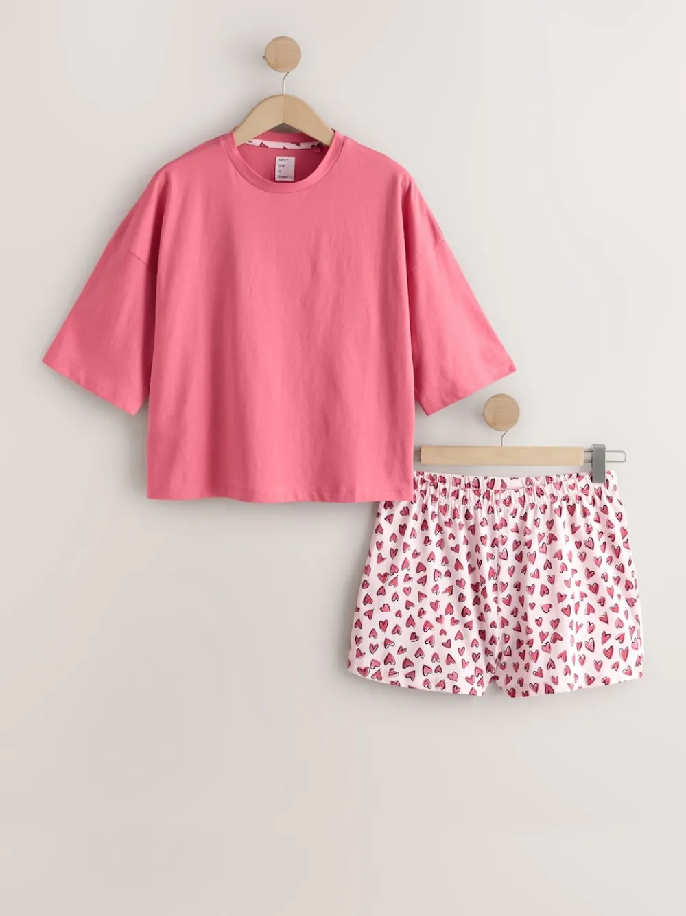 Next Cotton Short Set Pyjamas Pink Heart Outlet