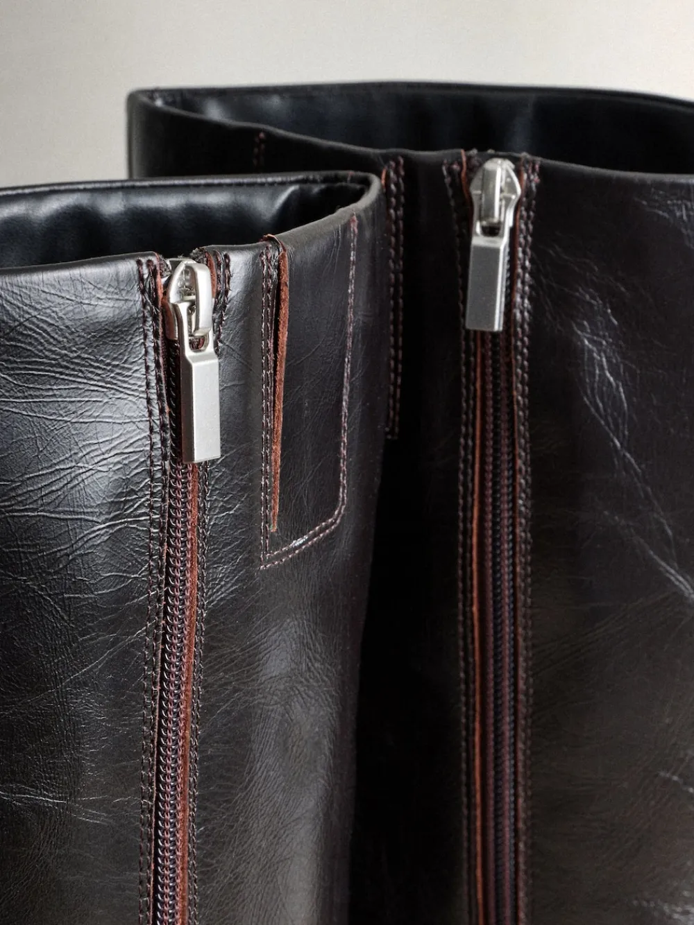 Next Crinkle Effect Leather Signature Underset Heel Knee High Boots Chocolate Brown Best