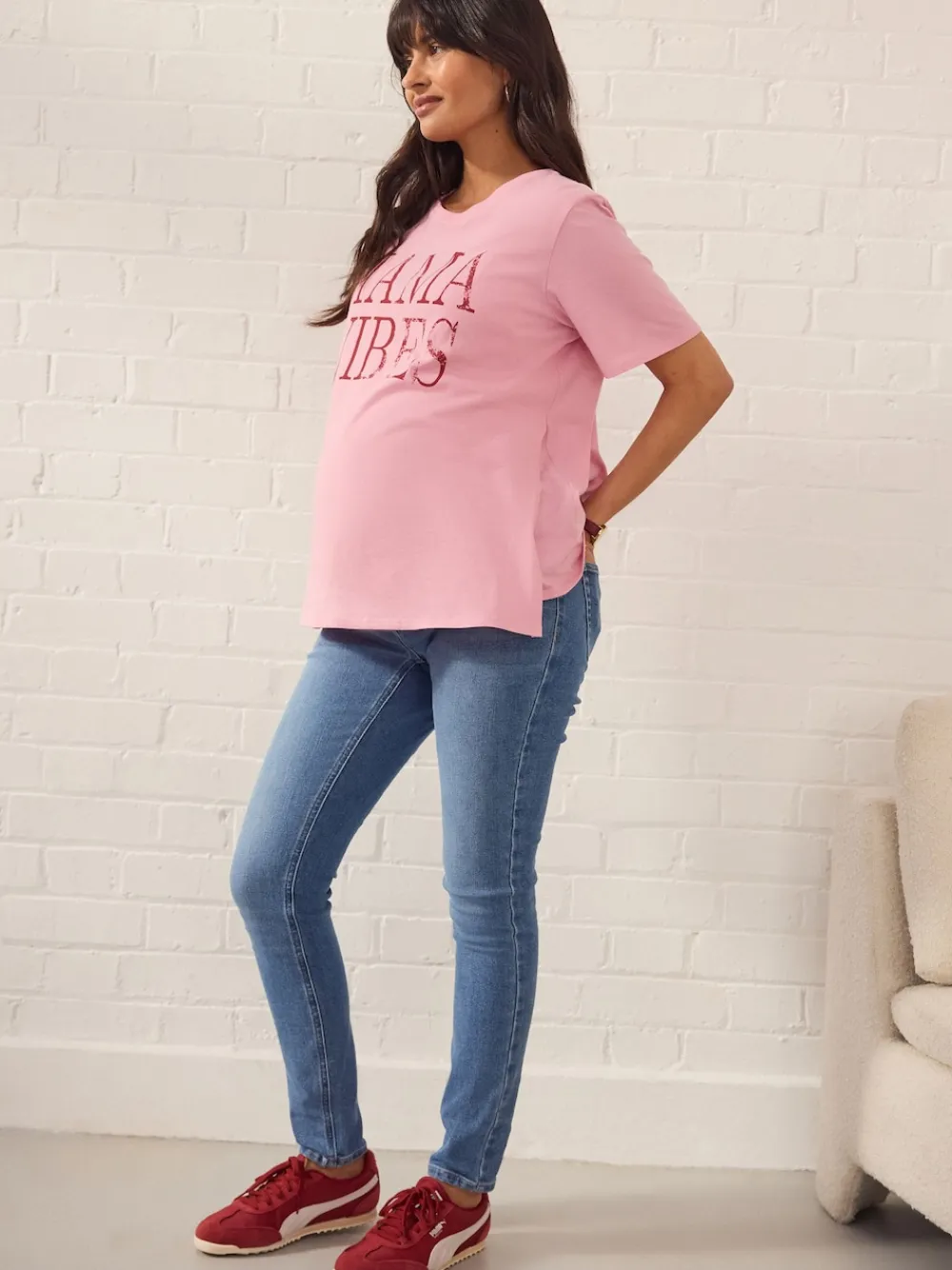 The perfect denim to take you through your pregnancy, with over-the-bump bands for comfort. Short to fit inside leg 27″ / 69cm. Regular to fit inside leg 29″ / 74cm. Long to fit inside leg 31″ / 79cm. Machine washable. Main 94% Cotton, 5% Elastomultiester, 1% Elastane. Upper Lining 90% Viscose, 10% Elastane.