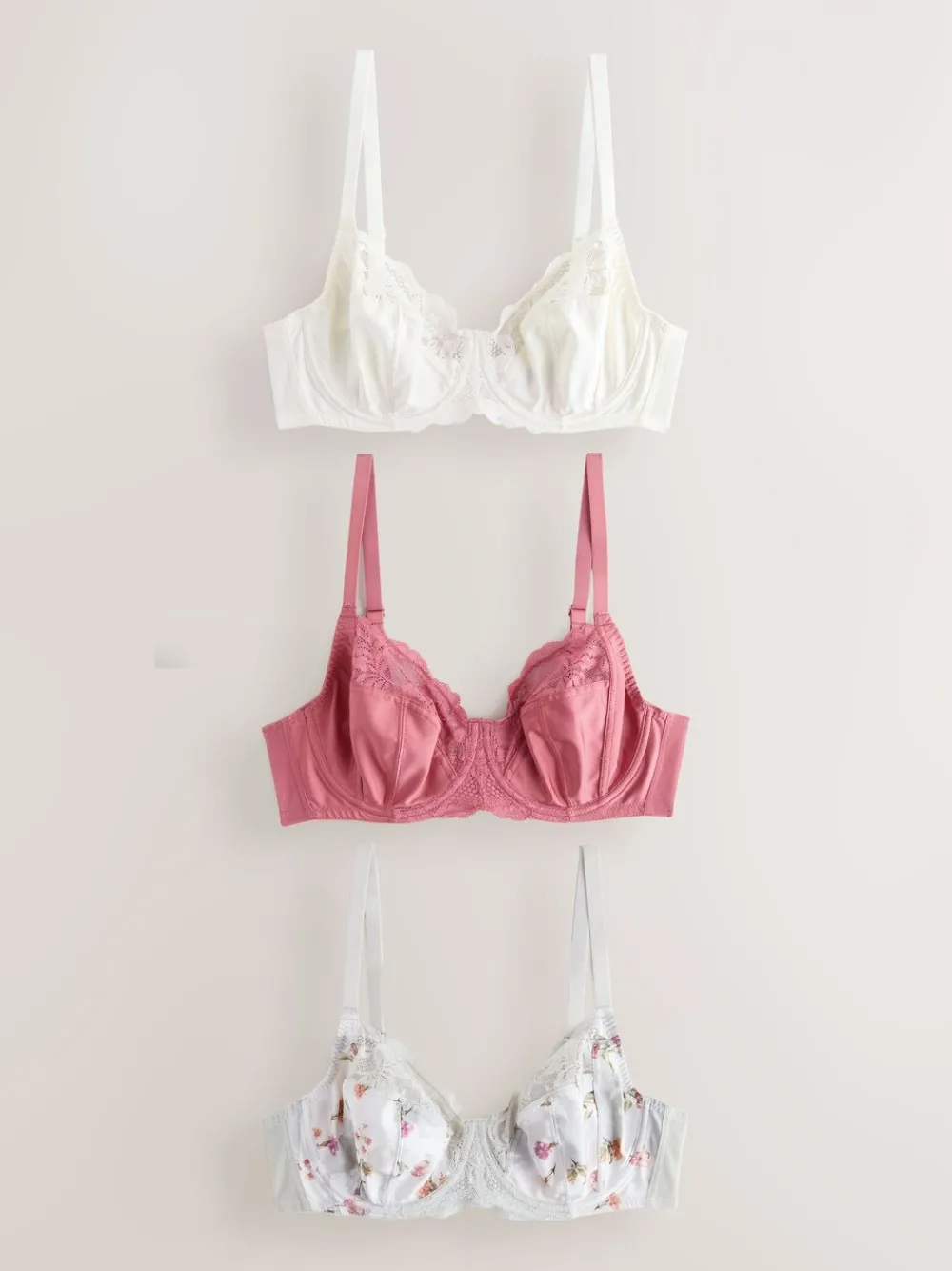 Next DD+ Non Pad Full Cup Bras 3 Pack Pink/Cream/Green Floral Sale